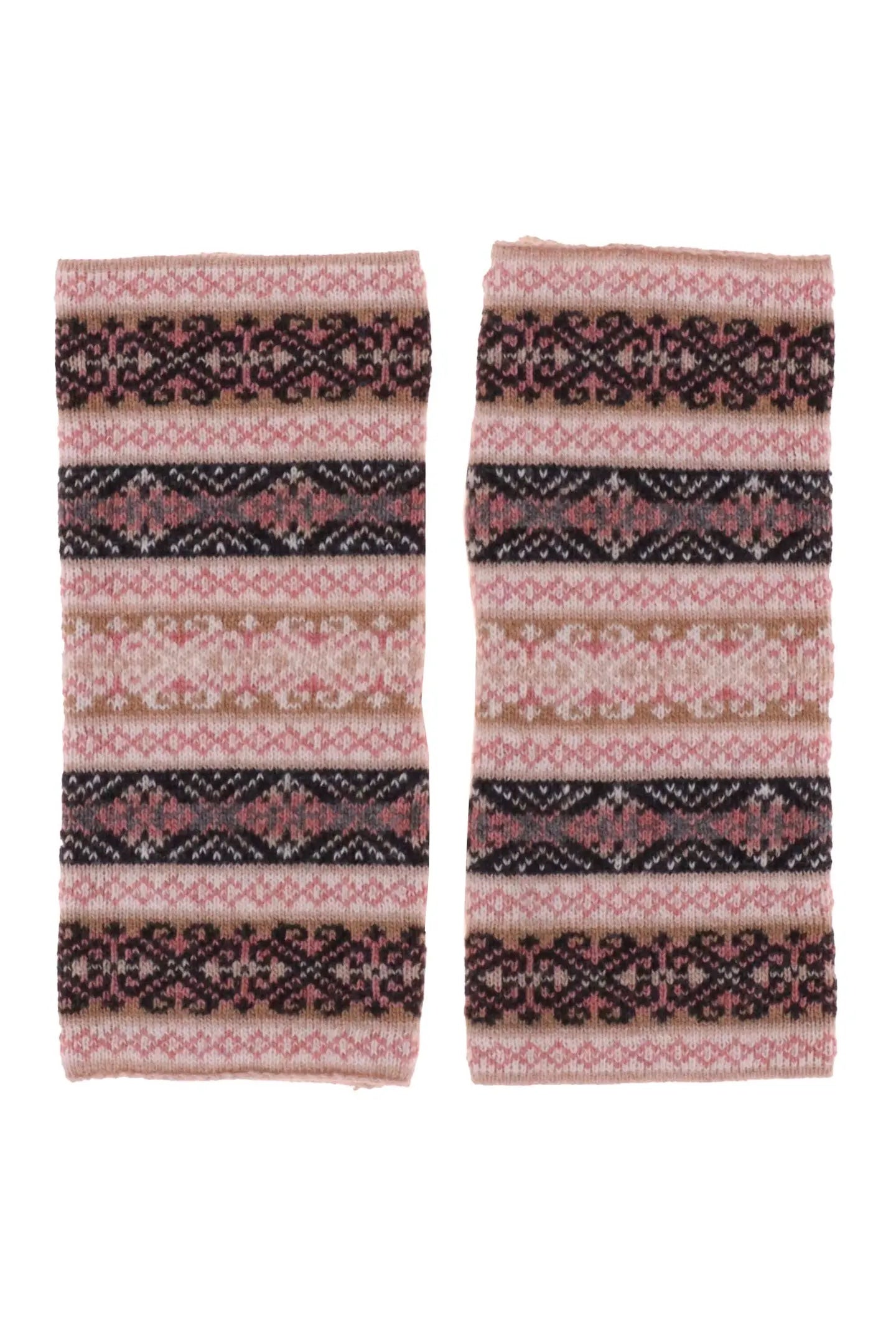 Cashmere Blend Fairisle Wrist Warmers | Cream & pink