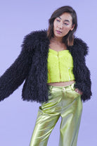 Bamboo Lyocell Knitted Vegan Faux Shearling Jacket | Black