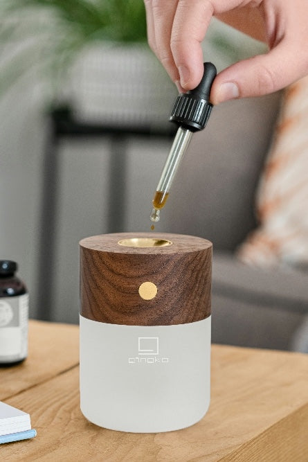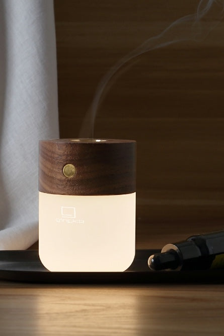 This Smart Diffuser Lamp is a portable and real wood ambient desk light with a seamlessly integrated copper plate oil burning diffuser. With a handy gold touch sensor control, it gently heats up to fill your room silently and slowly with your favourite scent whilst emitting a beautiful light through the frosted glass.