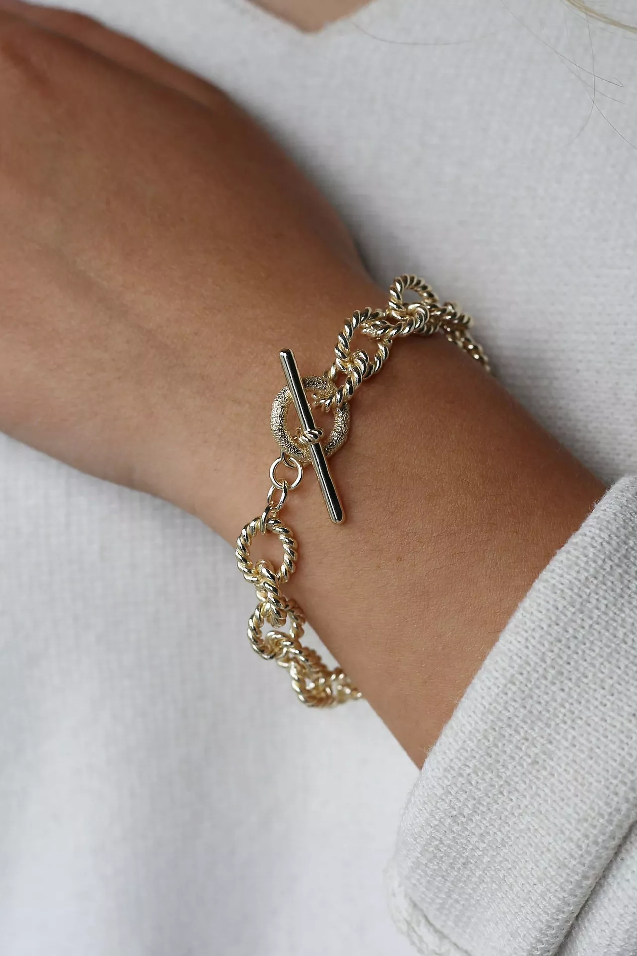 Chunky Twist T-Bar Chain Bracelet | Gold
