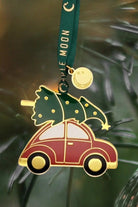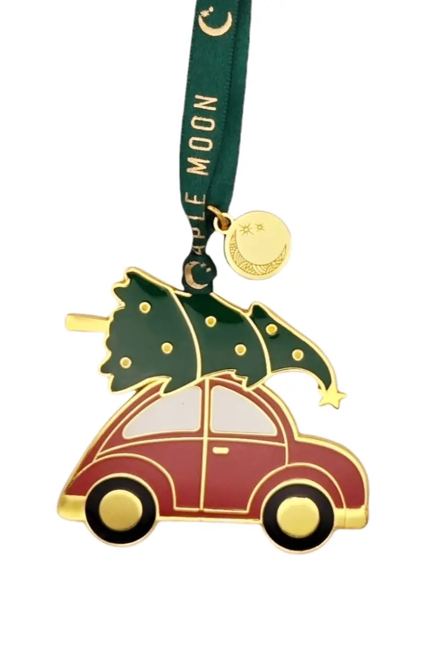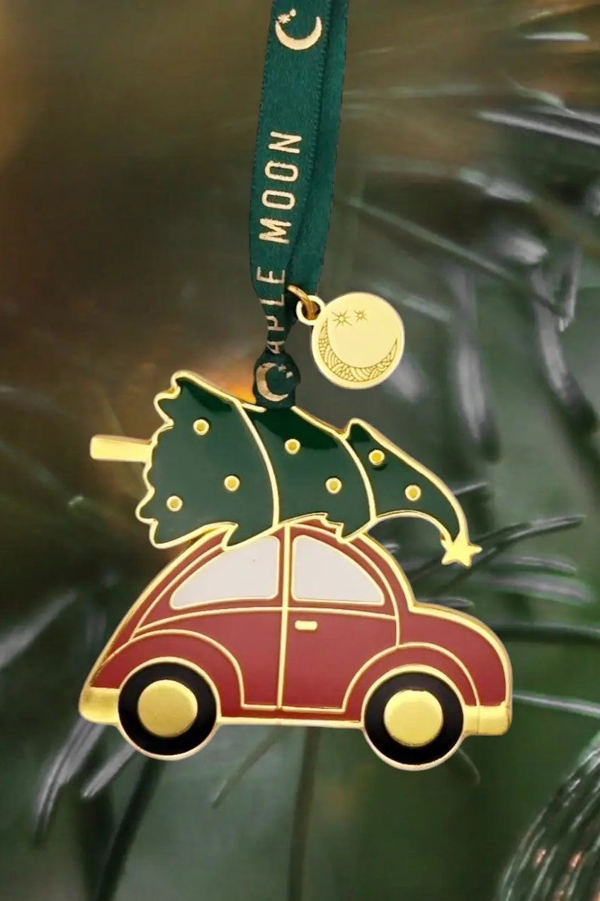 Bring some festive adventure to your tree with this charming red car enamel decoration. Featuring a classic red car carrying a decorated Christmas tree on its roof, this ornament captures the excitement of bringing home the perfect tree for the holidays.
