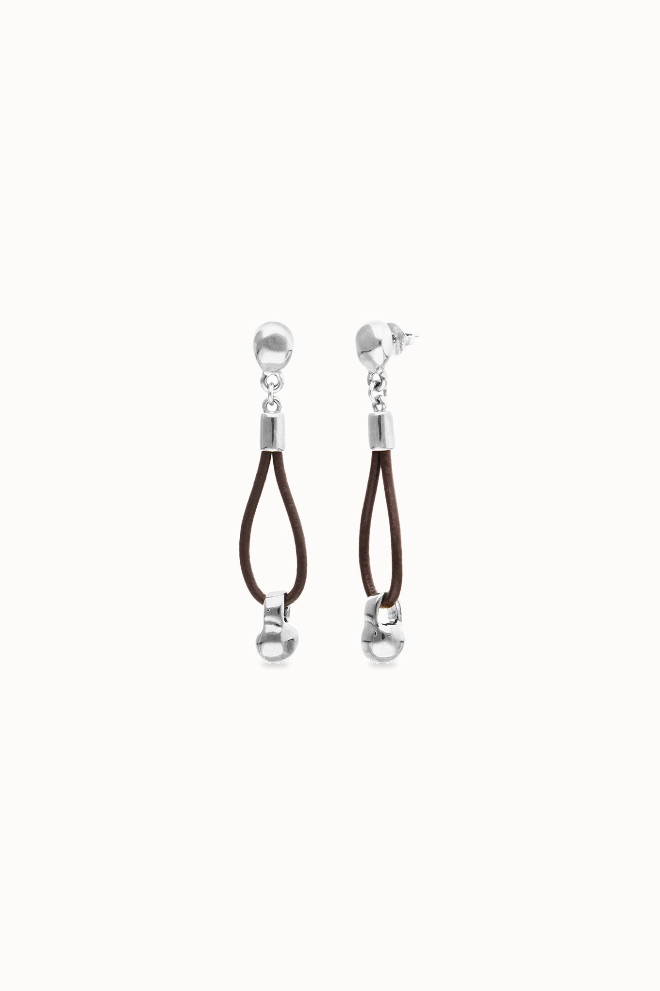 These earrings capture movement in its most essential form. The leather cord falls in a gentle curve that comes alive with every gesture, creating a flexible line that follows your body’s natural rhythm with ease.