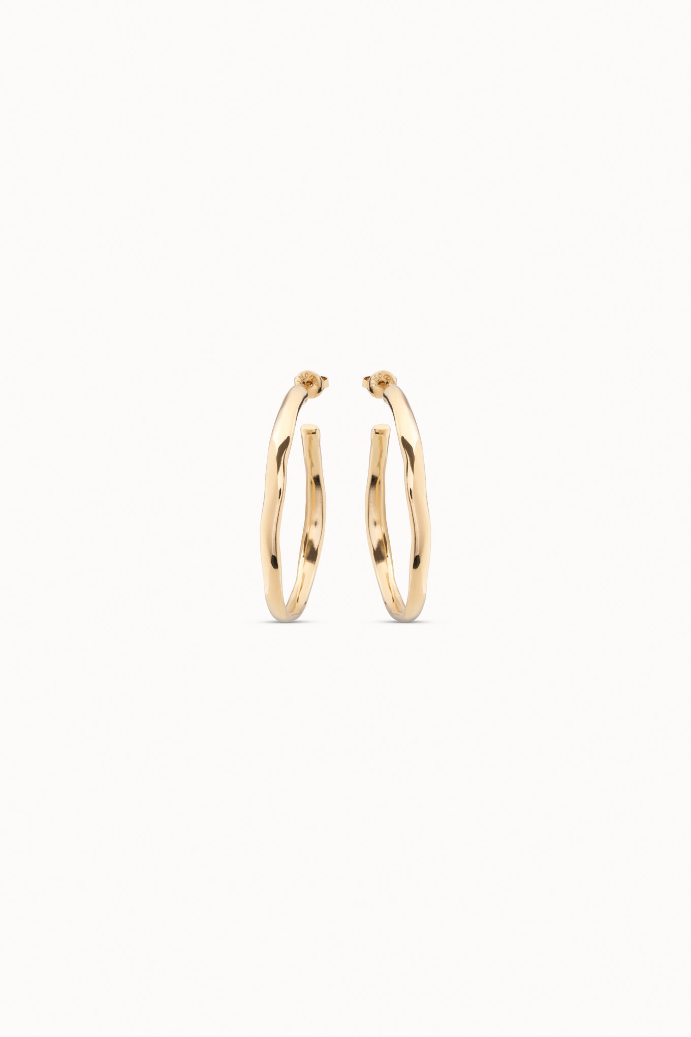 18K gold-plated open hoop earrings with nut clasp. Made in Spain under a 100% handcrafted process.