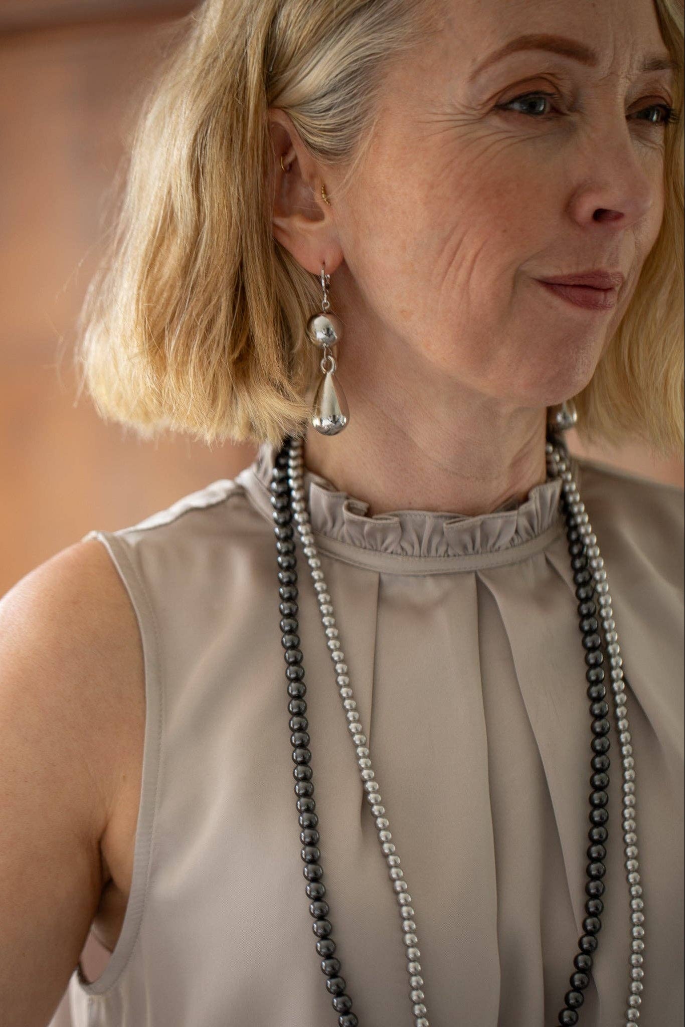Sandhurst Earrings have been designed in a unique tear drop shape, finished with a ball bead detailing to the top. Lightweight yet high quality, it has a hinged clasp fastening for a secure fit.