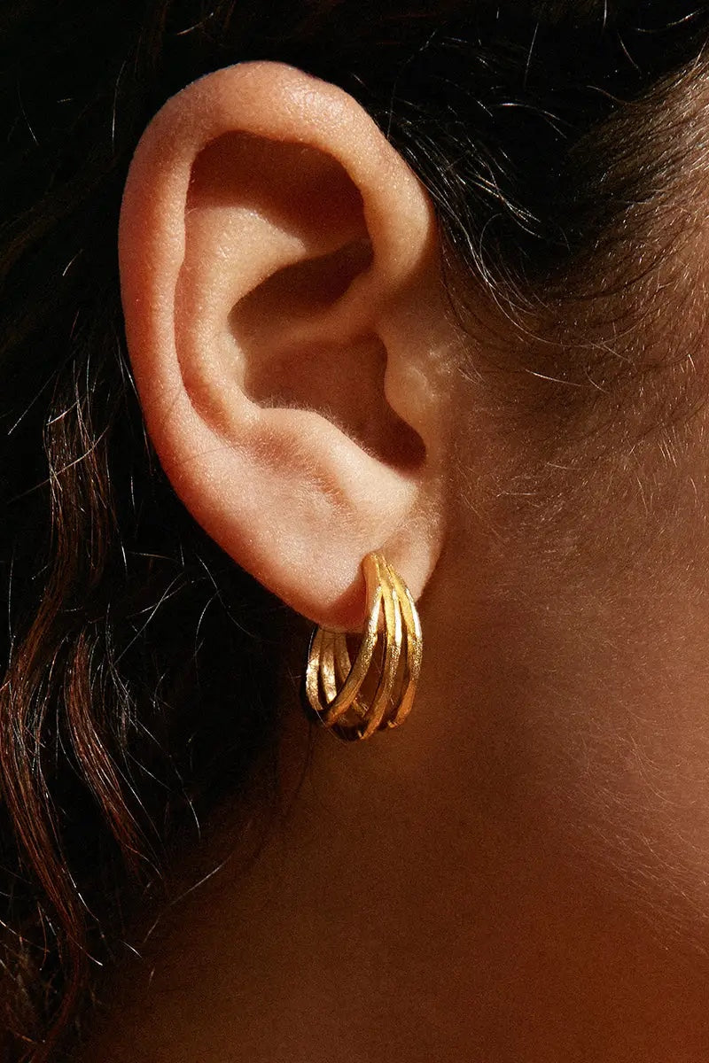 Elevate your everyday style with the Zéphir Trio Earrings in gold. This sophisticated reinterpretation of our bestseller features three hoops, each adorned with unique hammered textures that catch the light beautifully. Crafted in France and gold-plated for lasting elegance, these earrings blend classic minimalism with a fresh, summery vibe—perfect for adding subtle refinement to any look.
