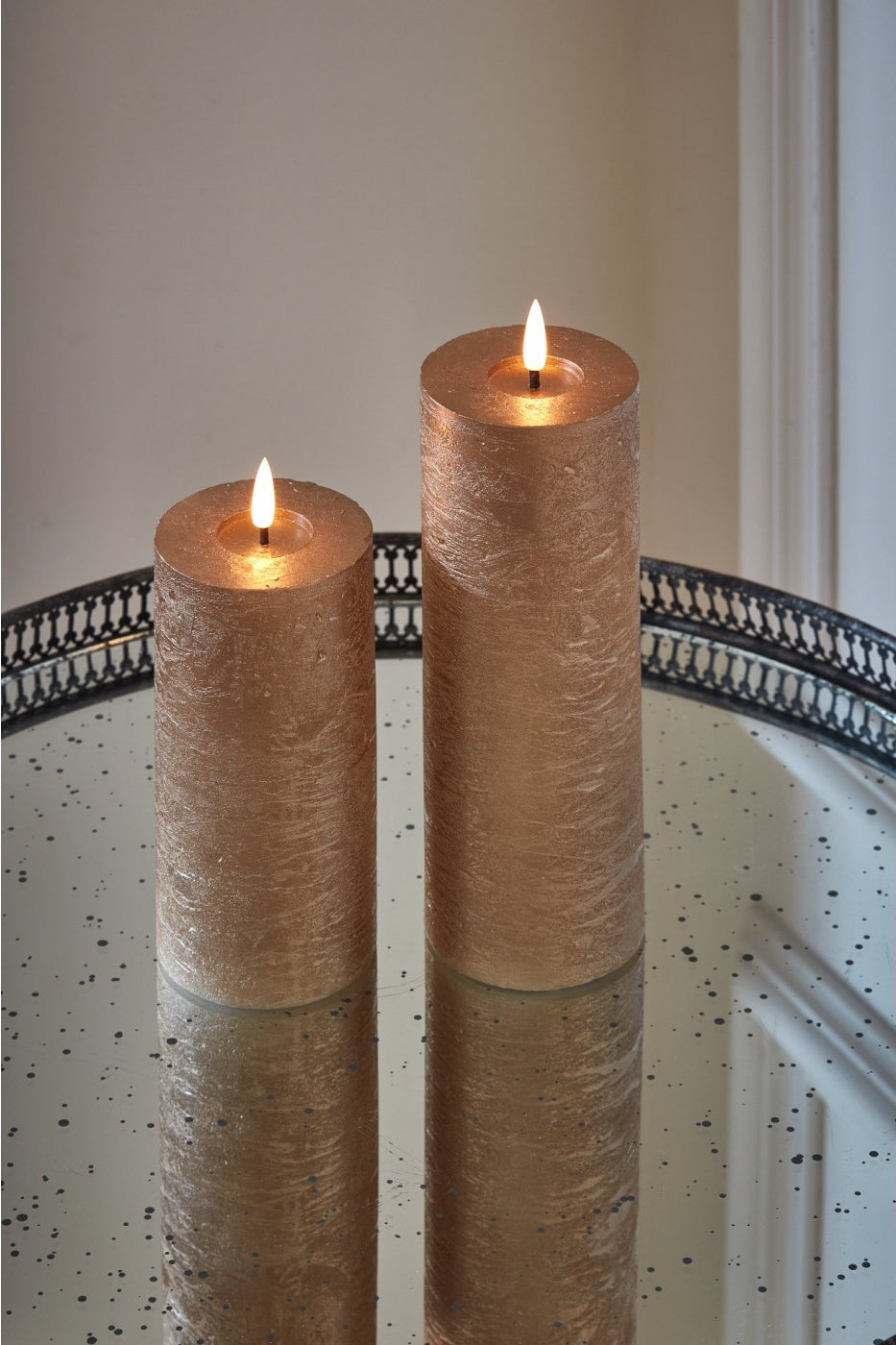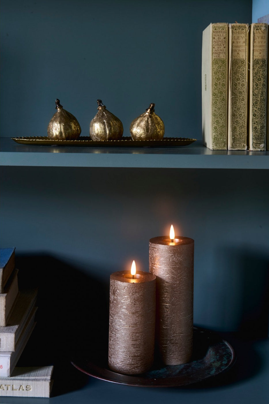 LED Metallic Pillar Candles 7.5cm | Dark Champagne