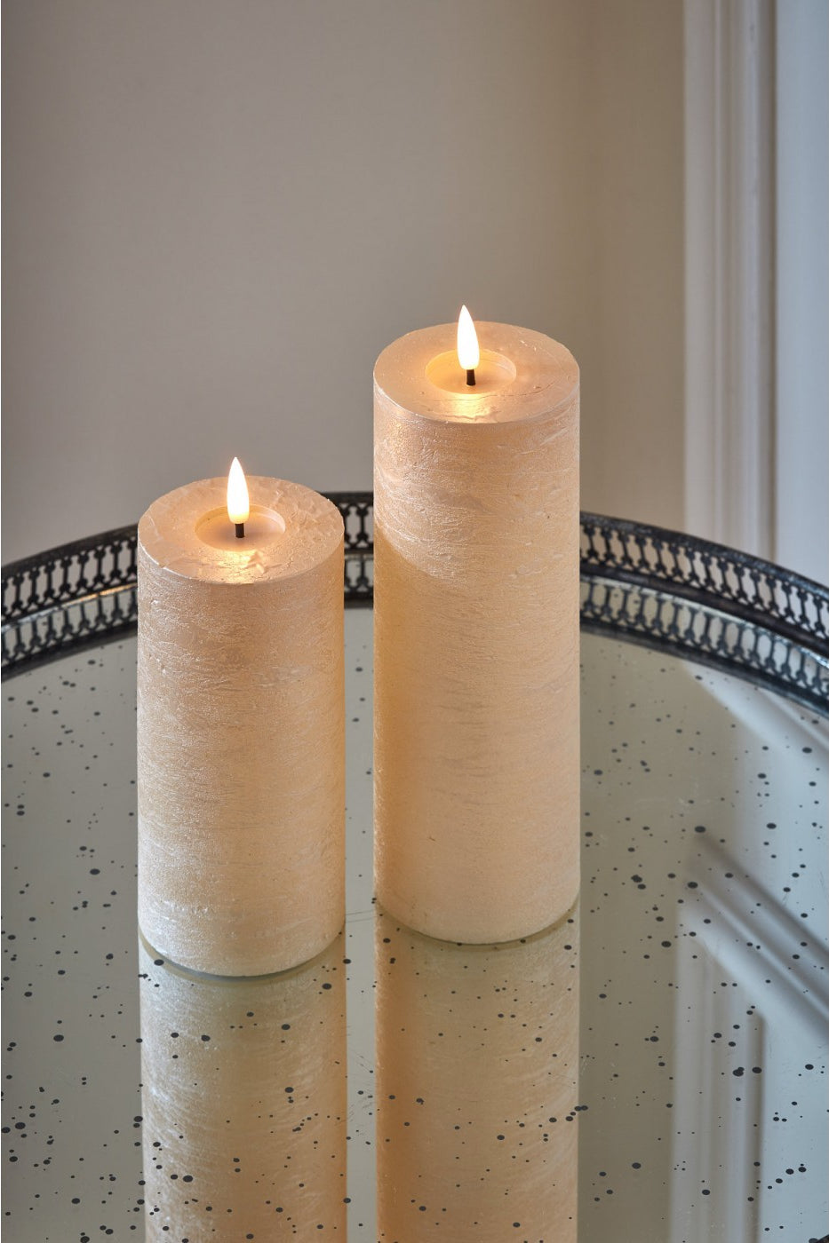 LED Metallic Pillar Candles 7.5cm | Light Champagne