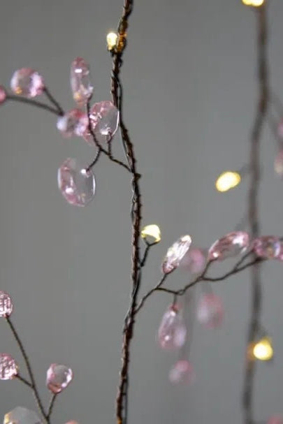 Elevate your indoor decor with the Crystal Blossom Lights in Pink. Featuring 100 warm white LEDs delicately set on elegant brown copper wire, these 1.8m acrylic blossom-shaped lights create a refined, sparkling ambiance. Battery-powered for convenience and equipped with a 6-hour timer, they offer effortless charm without clutter. Perfect for adding a sophisticated glow to any space.