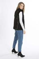 Add a touch of sophistication to your wardrobe with this luxurious Faux Fur Faux Suede Striped Gilet. Crafted from a sumptuous combination of faux fur and faux suede, it features a hip-length silhouette and is lined with 100% viscose for ultimate comfort. Combining opulence and ease of wear, it’s an essential for your luxury collection.