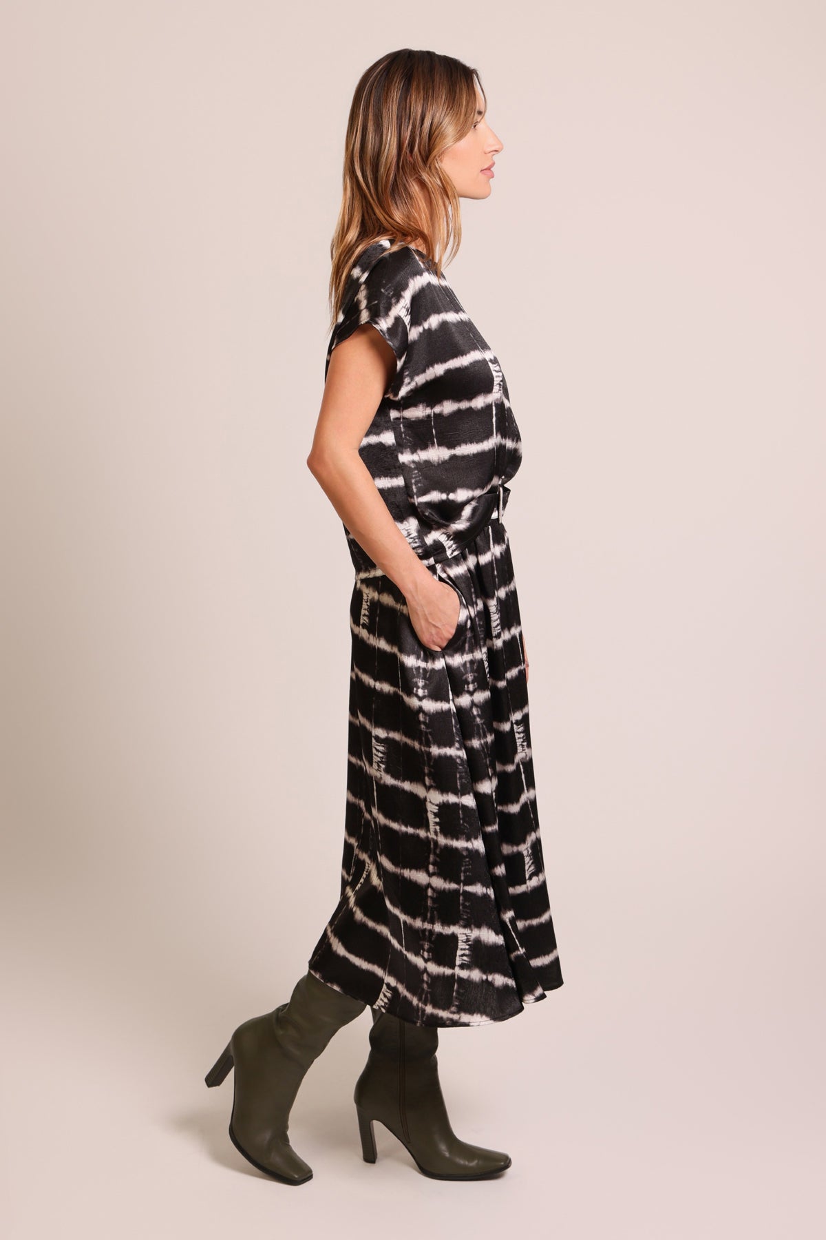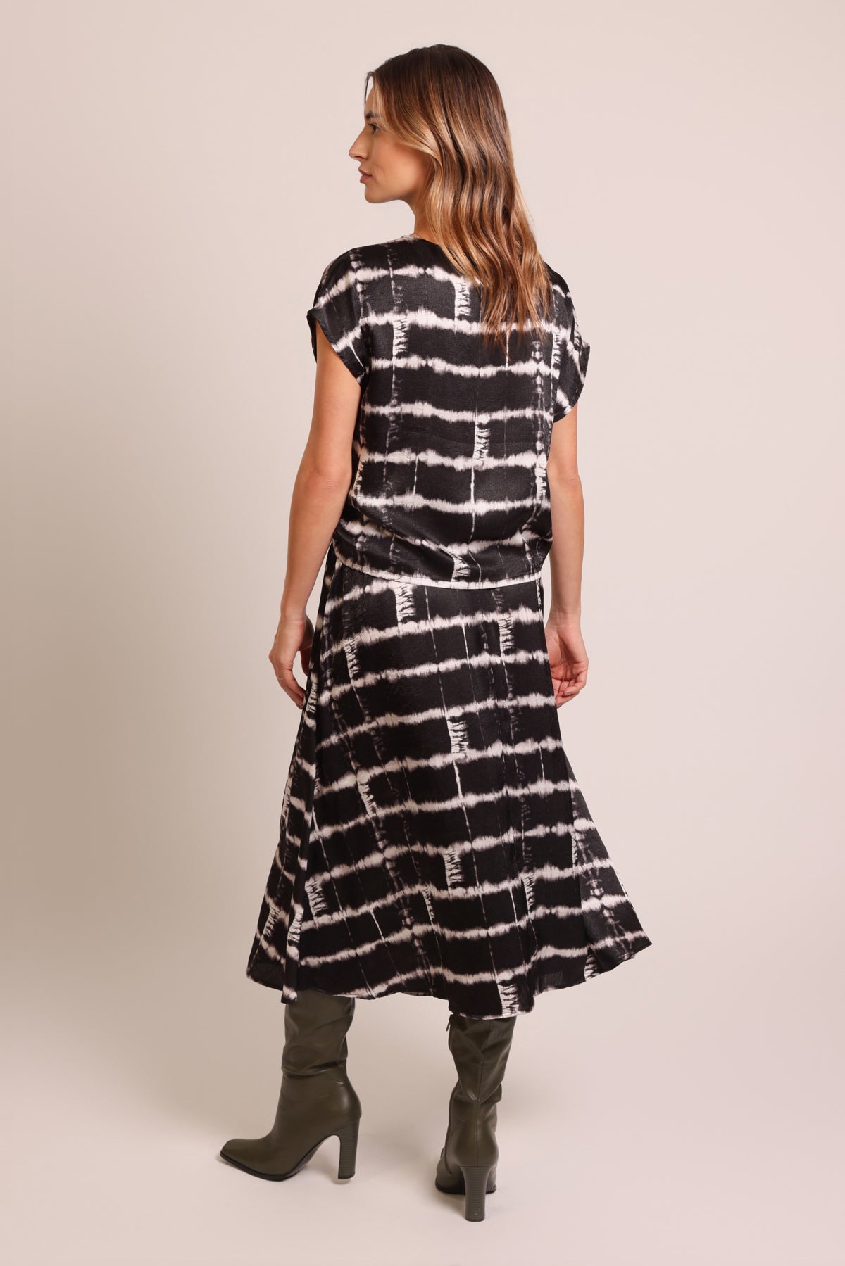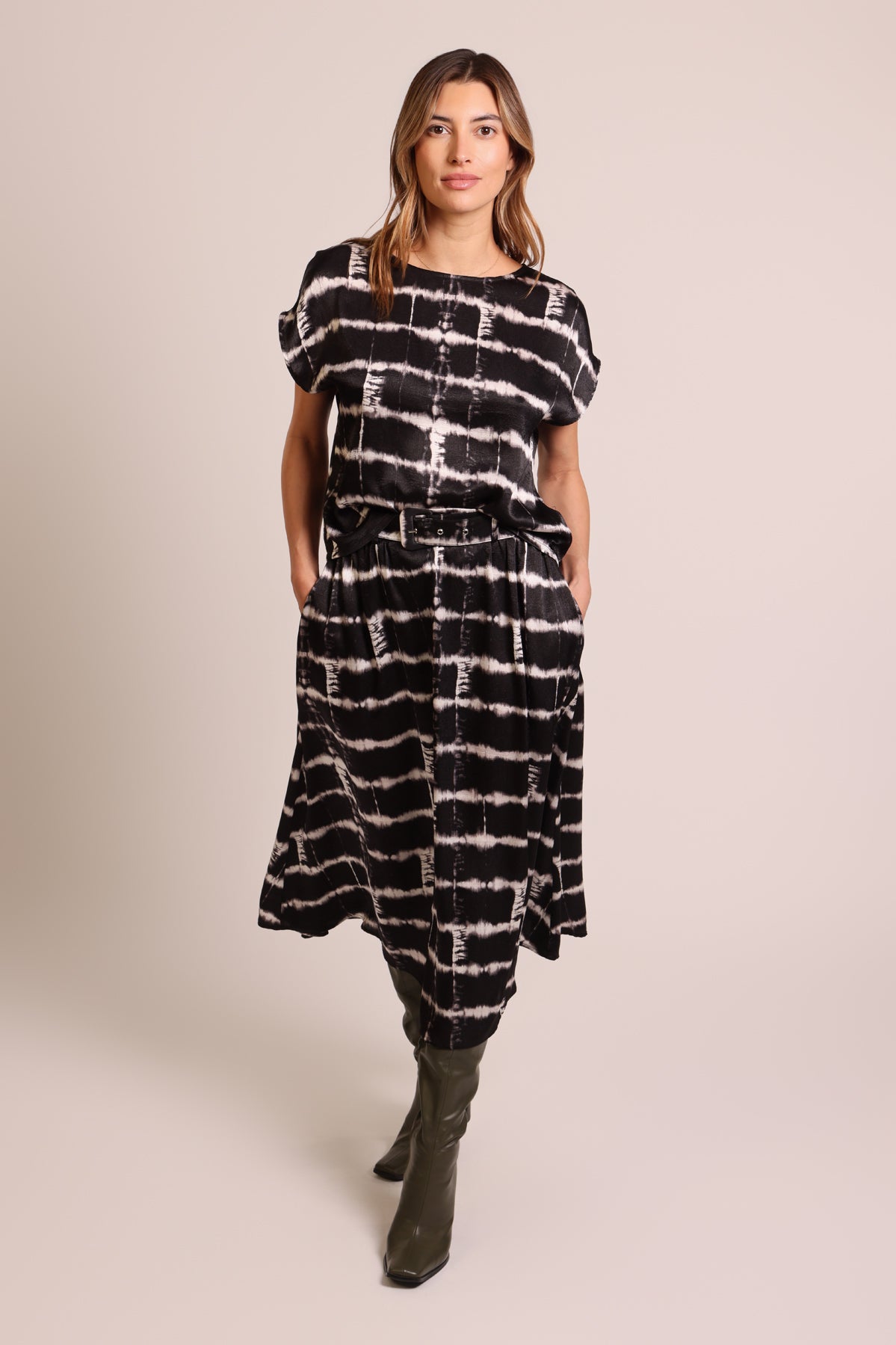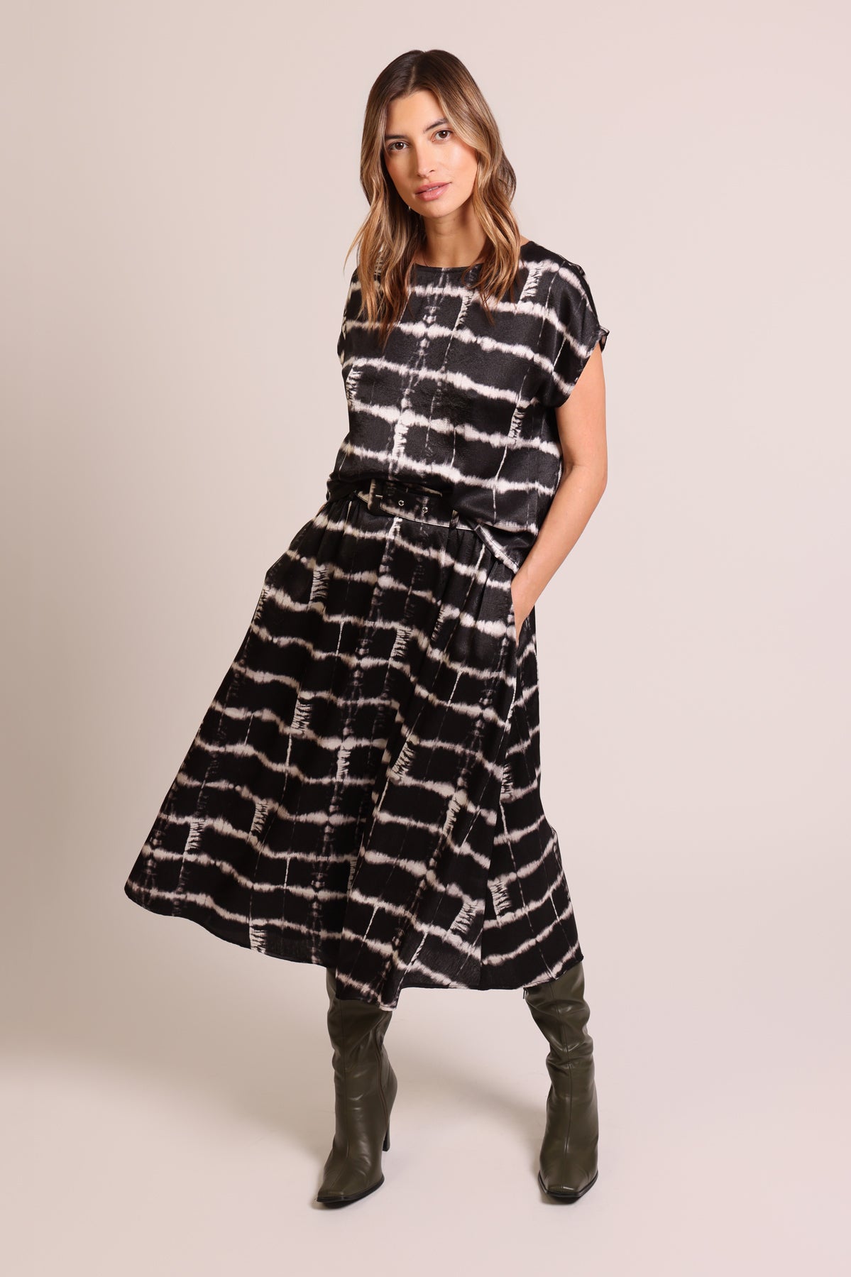 This elegant Grace Skirt in a subtle shadow hue features a flattering below-the-knee length and a tailored silhouette enhanced by a self-fabric belt. Crafted from 100% viscose, it offers a soft, breathable feel. Practical side pockets and a discreet back zip fastening combine style with functionality, making it a refined choice for any sophisticated wardrobe.