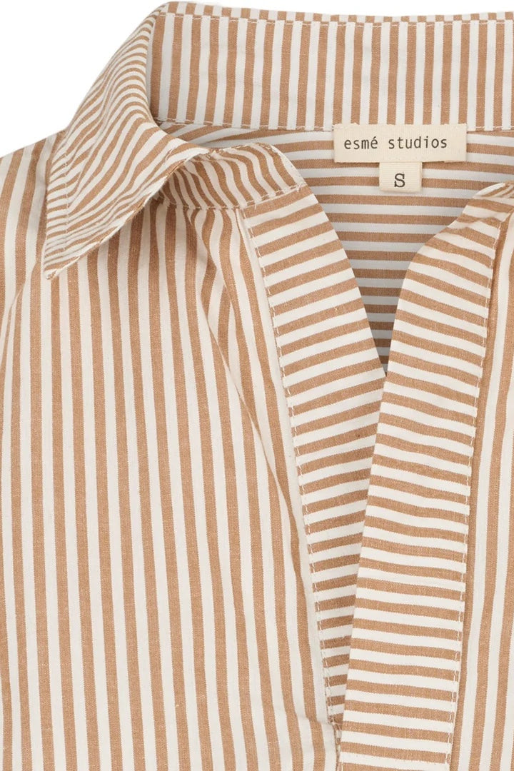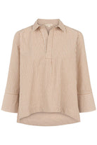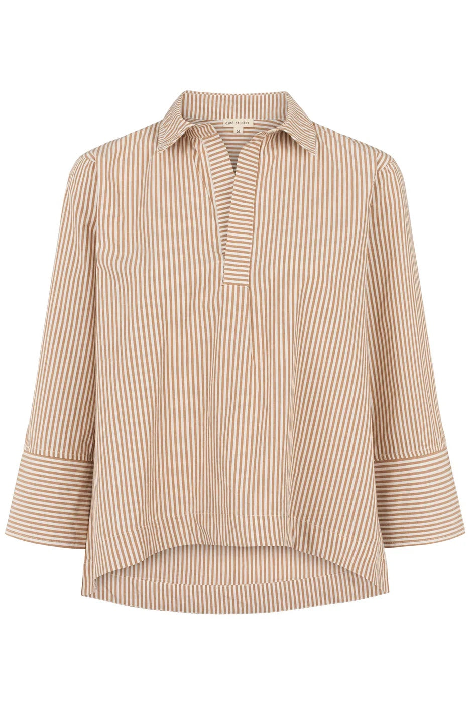 Crafted from 100% organic cotton, the Hella Blouse in Brown Stripe offers a refined blend of comfort and style. Its soft, breathable fabric ensures all-day wearability, while the subtle stripe pattern adds a touch of understated elegance. Perfect for sophisticated wardrobes, this blouse pairs seamlessly with tailored trousers or skirts for a polished look.