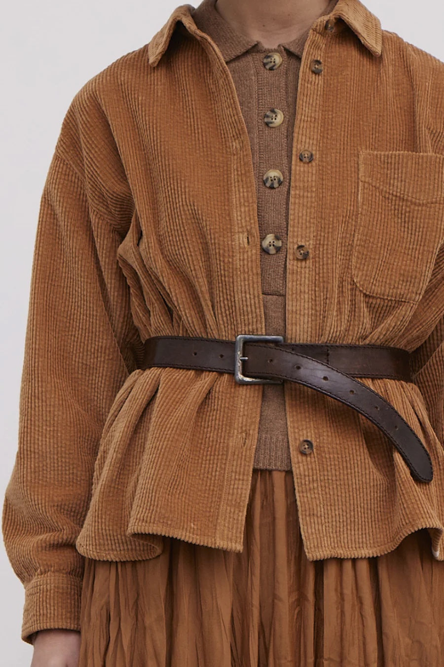 Crafted from 100% organic cotton, the Maxia Boxy Shirt in Chipmunk offers a refined take on the classic corduroy style. Its structured boxy silhouette provides effortless sophistication, while the front chest pocket adds a subtle yet practical detail. This jacket combines natural fabric with a timeless design, making it a versatile wardrobe staple for a polished, confident look.