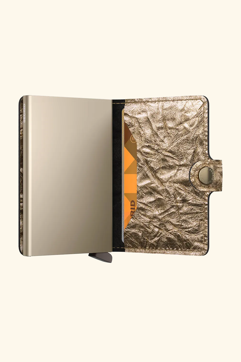 Small in size and surprisingly large in storage capacity, the Miniwallet combines the best of both worlds. The exterior holds banknotes, receipt and cards, while the aluminium Cardprotector allows you to slide out cards with one simple motion and protects them from bending, breaking and unwanted wireless communication.