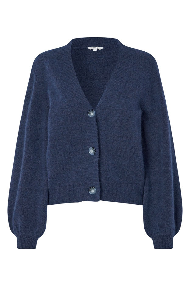 Crafted from a refined blend of recycled polyester, wool, alpaca, nylon, and elastane, the Molenda Knitted Cardigan in Night Sky offers exceptional warmth and subtle stretch for comfort. This sophisticated piece combines luxurious natural fibers with durability, making it an elegant choice for layering throughout the seasons. Its tailored fit and refined texture provide a timeless look that enhances any wardrobe with understated elegance.