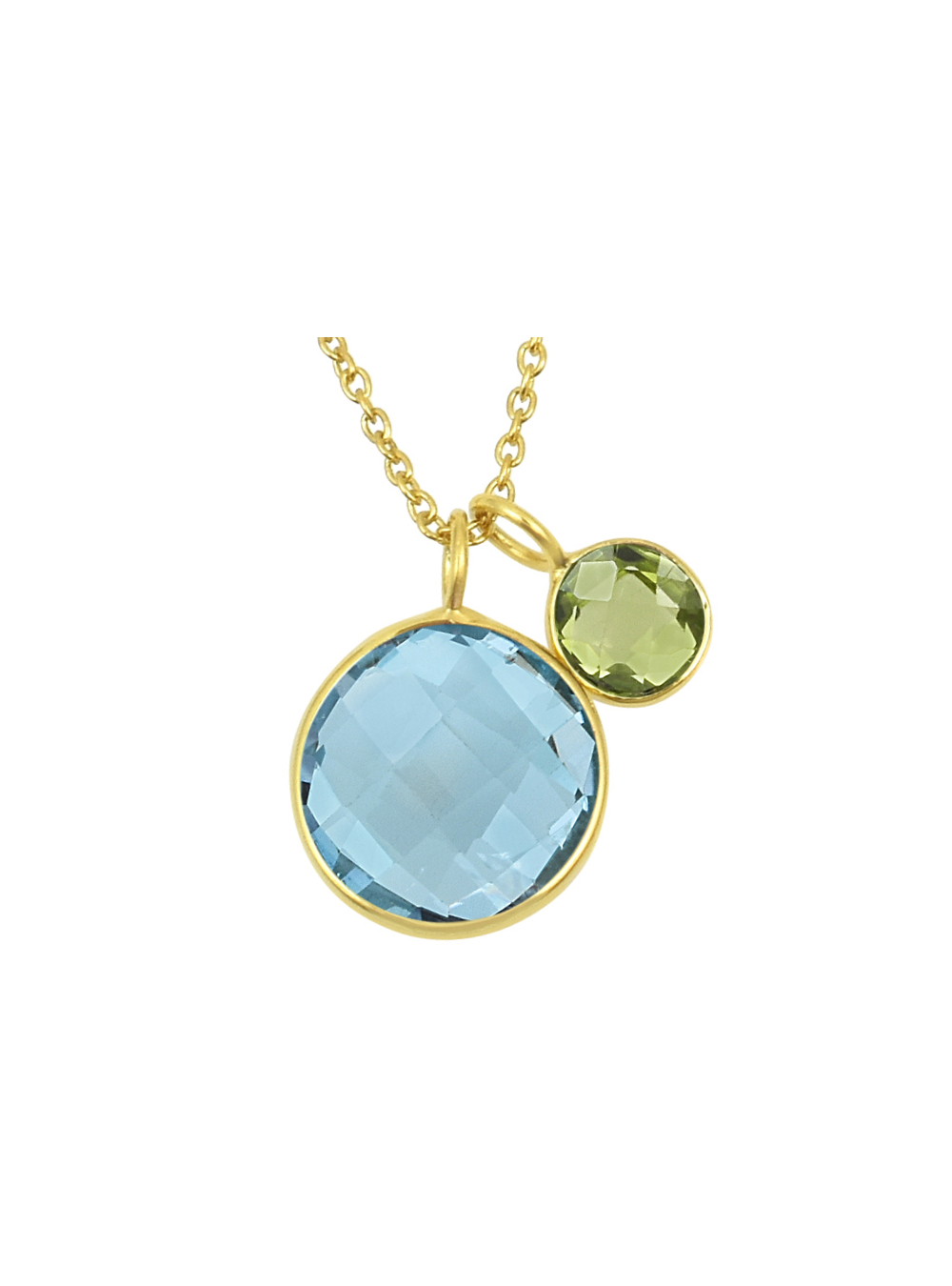 Materials: the necklace is made of gold plated sterling silver and is set with a peridot and blue topaz.