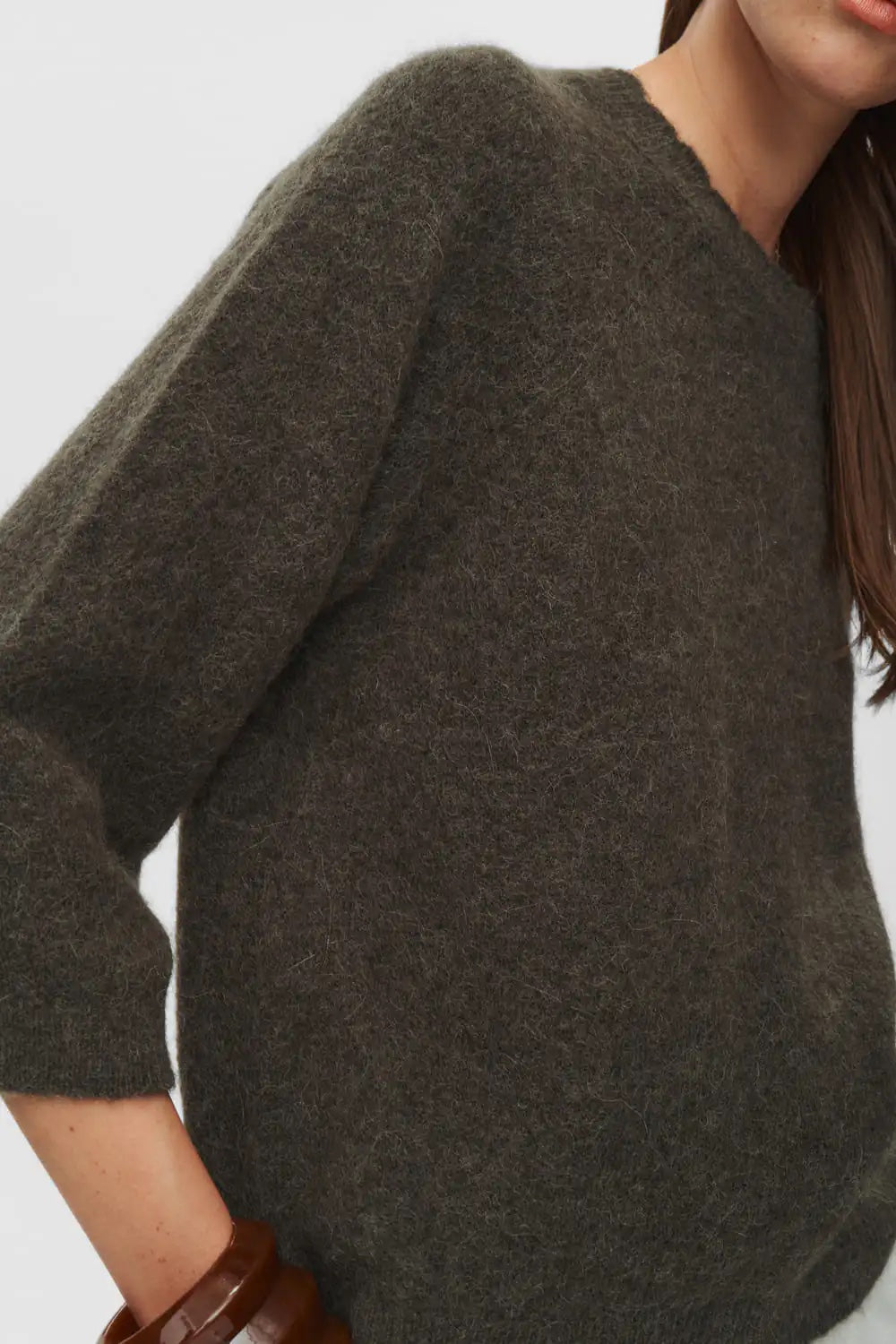 Experience refined comfort with the Riette Selma Pullover in grape leaf. Crafted from a luxurious blend of wool, alpaca, polyamide, and elastane, this knitted soft sweatshirt offers gentle warmth and a flattering fit. Its sophisticated design and rich texture make it an elegant choice for both casual and polished looks.