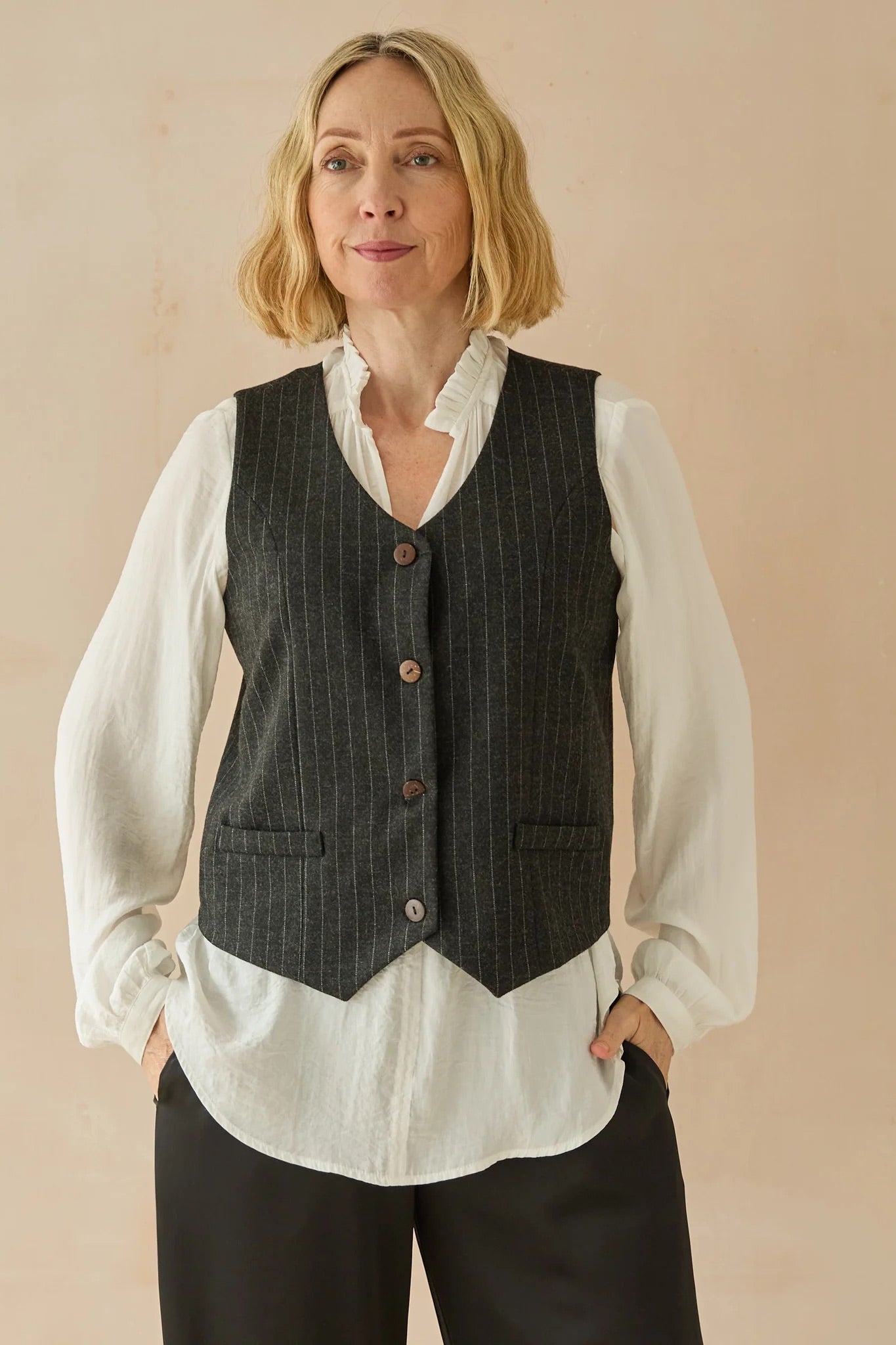 Wendy Waistcoat | Dark Charcoal Pinstripe