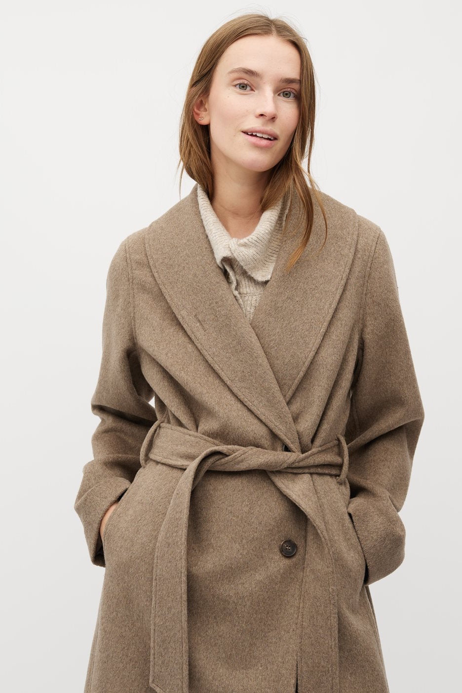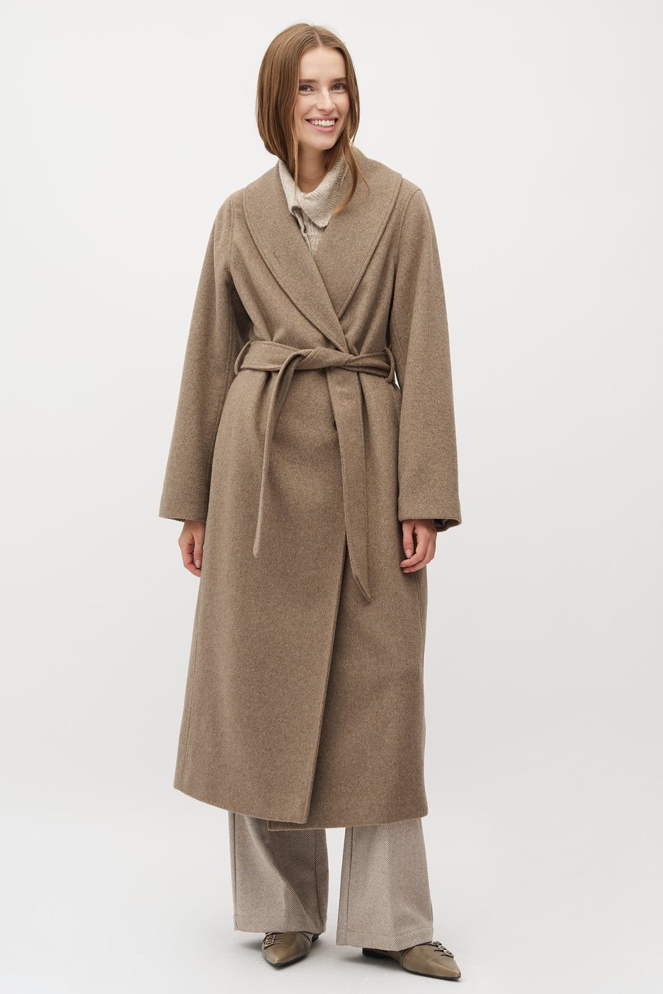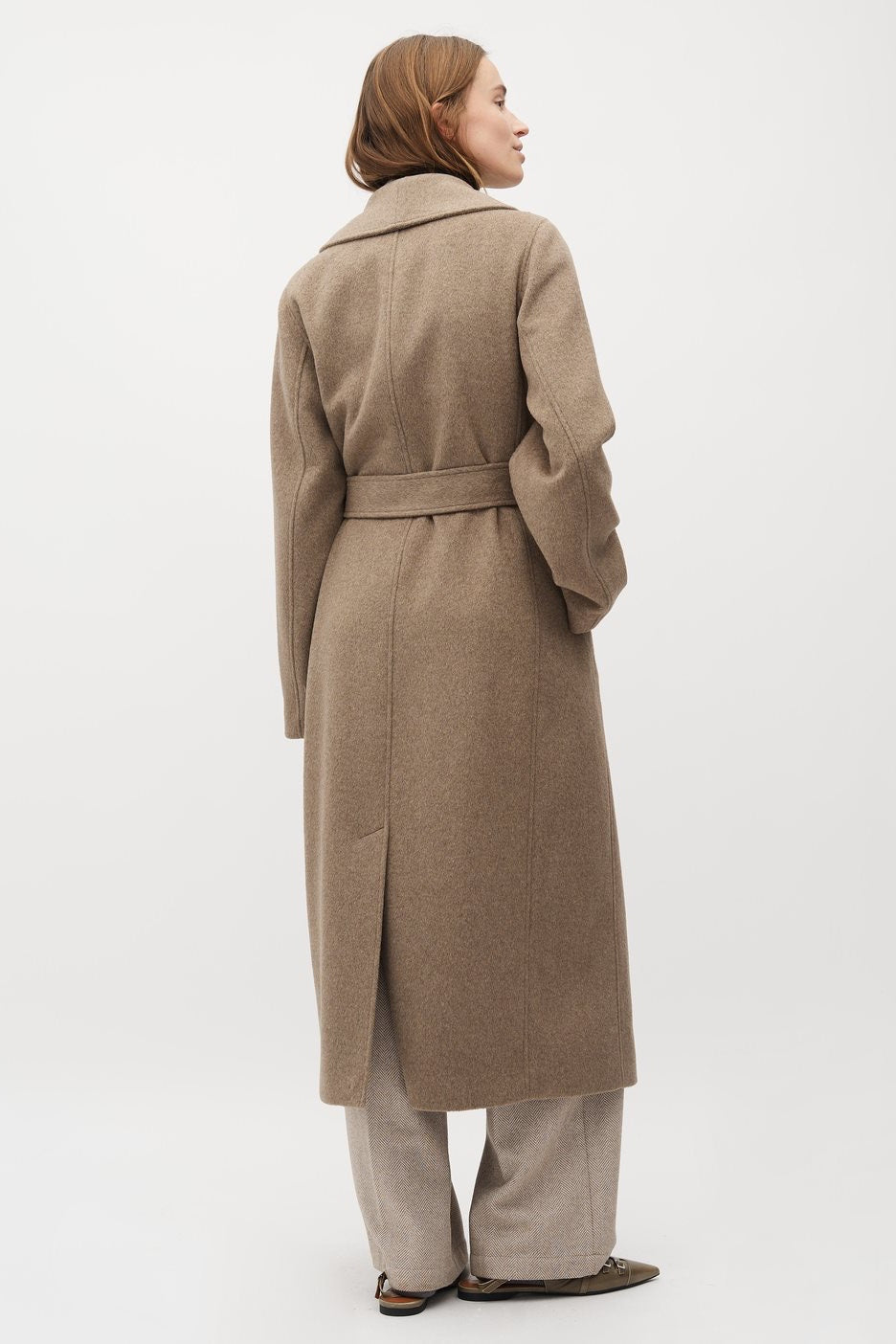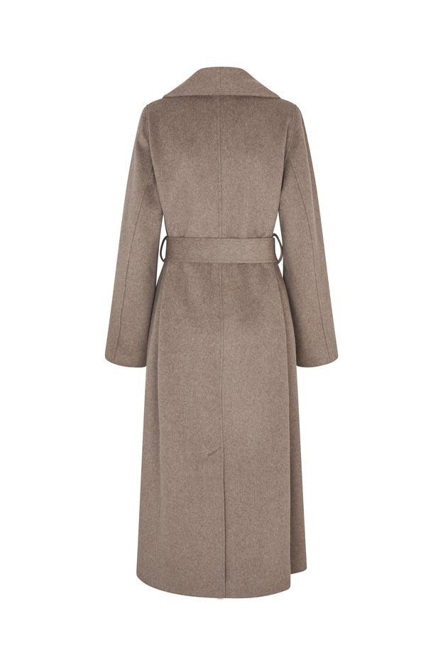 Elevate your wardrobe with the Umia Coat in Lava, crafted from a refined blend of 50% wool and 45% polyester for warmth and durability. Featuring a sleek maxi length, side pockets, and a subtle back slit, this coat combines elegance with practical design. The two-button closure and adjustable ties create a tailored silhouette, while long sleeves offer added comfort. A perfect balance of sophistication and functionality for the modern wardrobe.