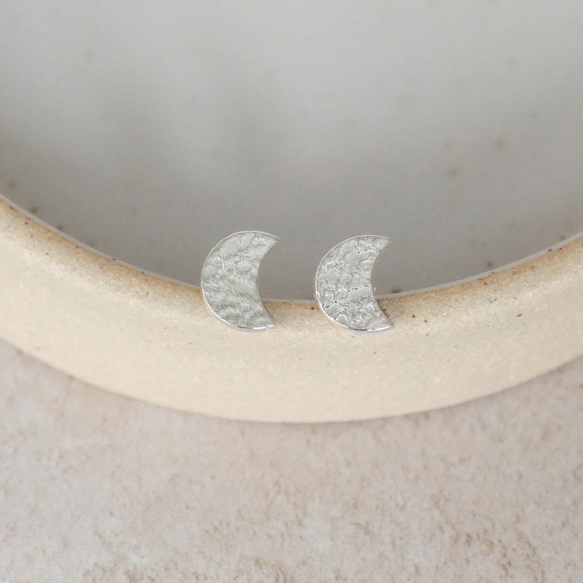 Textured Moon Studs | Sterling Silver