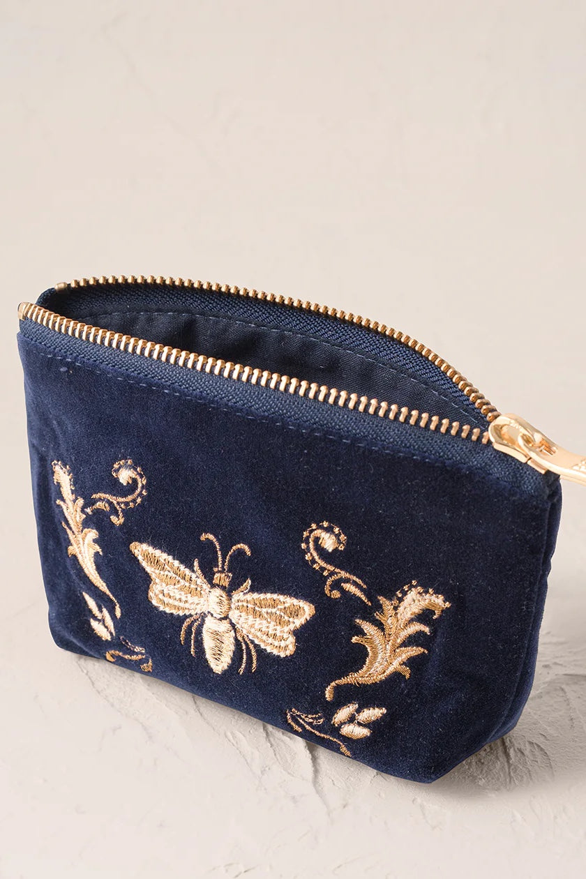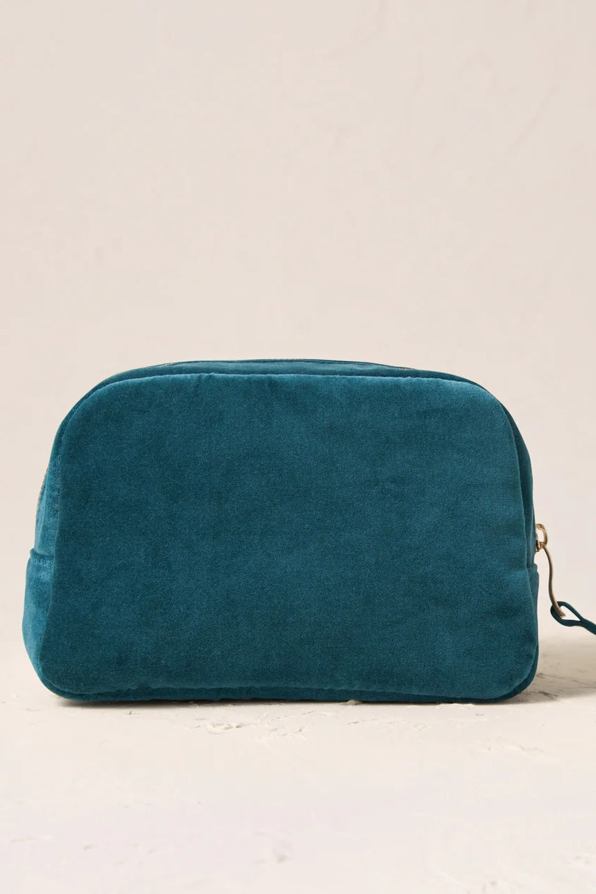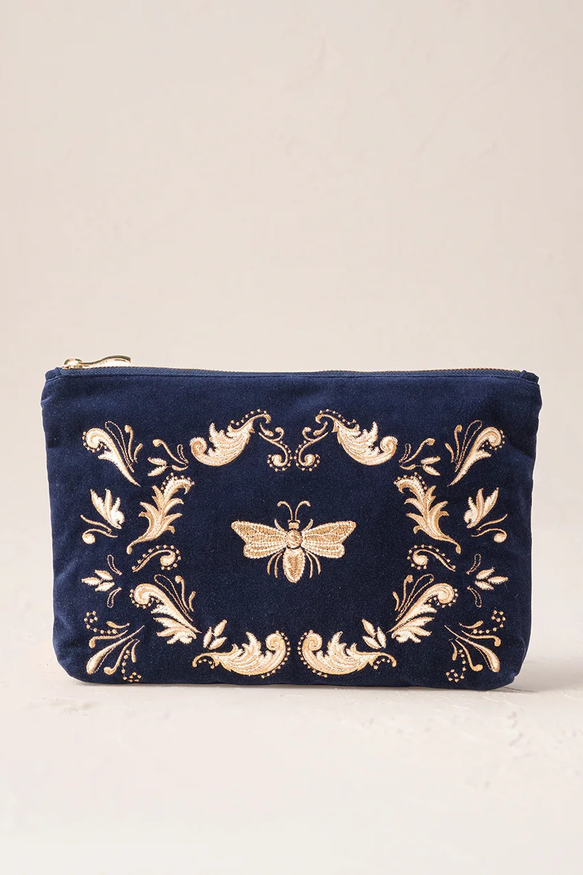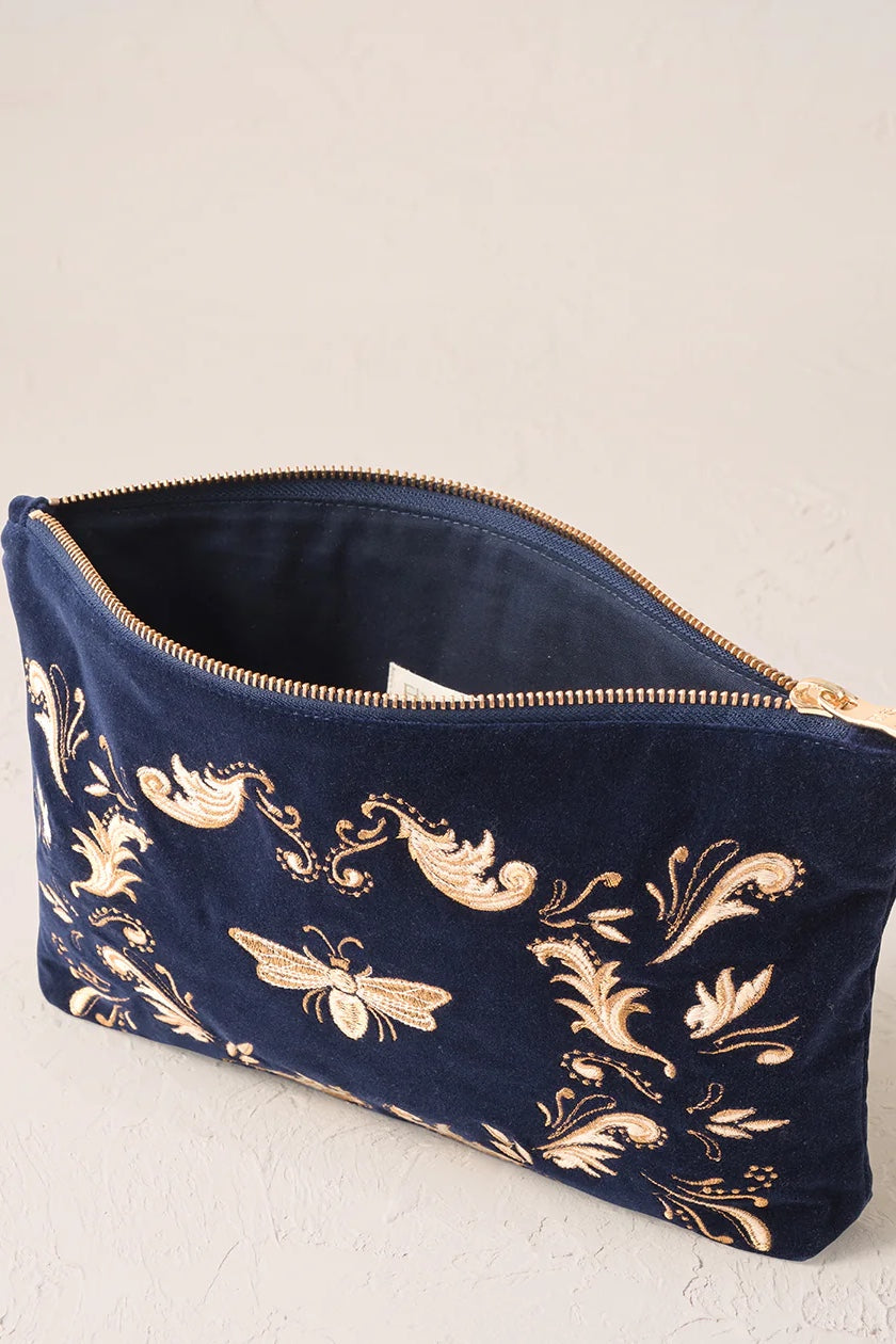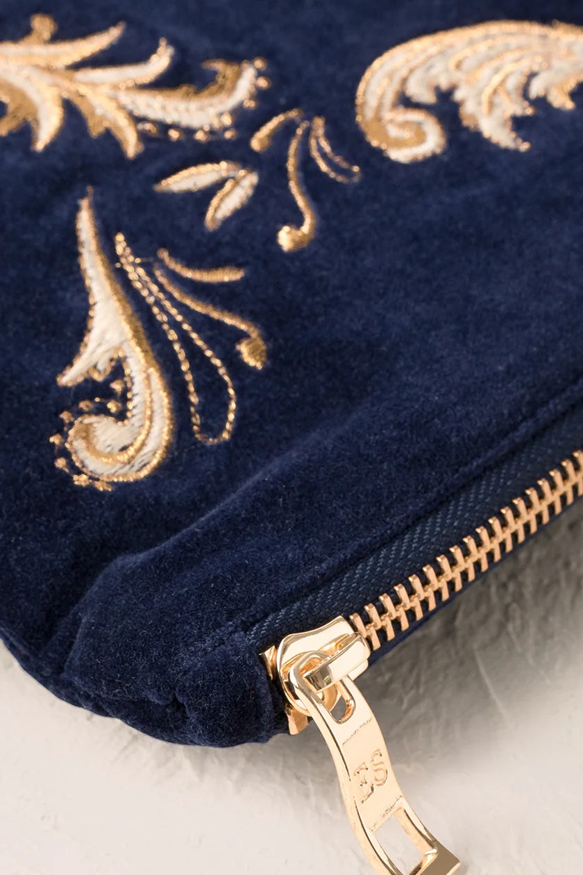 Ink Blue Velvet Makeup Bag | Botanical Garden