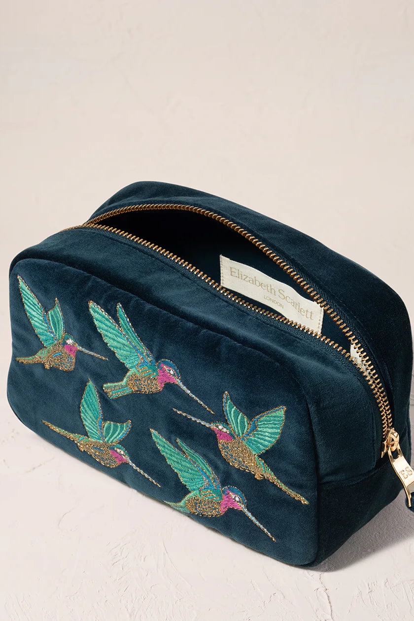 Ink Blue Velvet Makeup Bag | Hummingbrid
