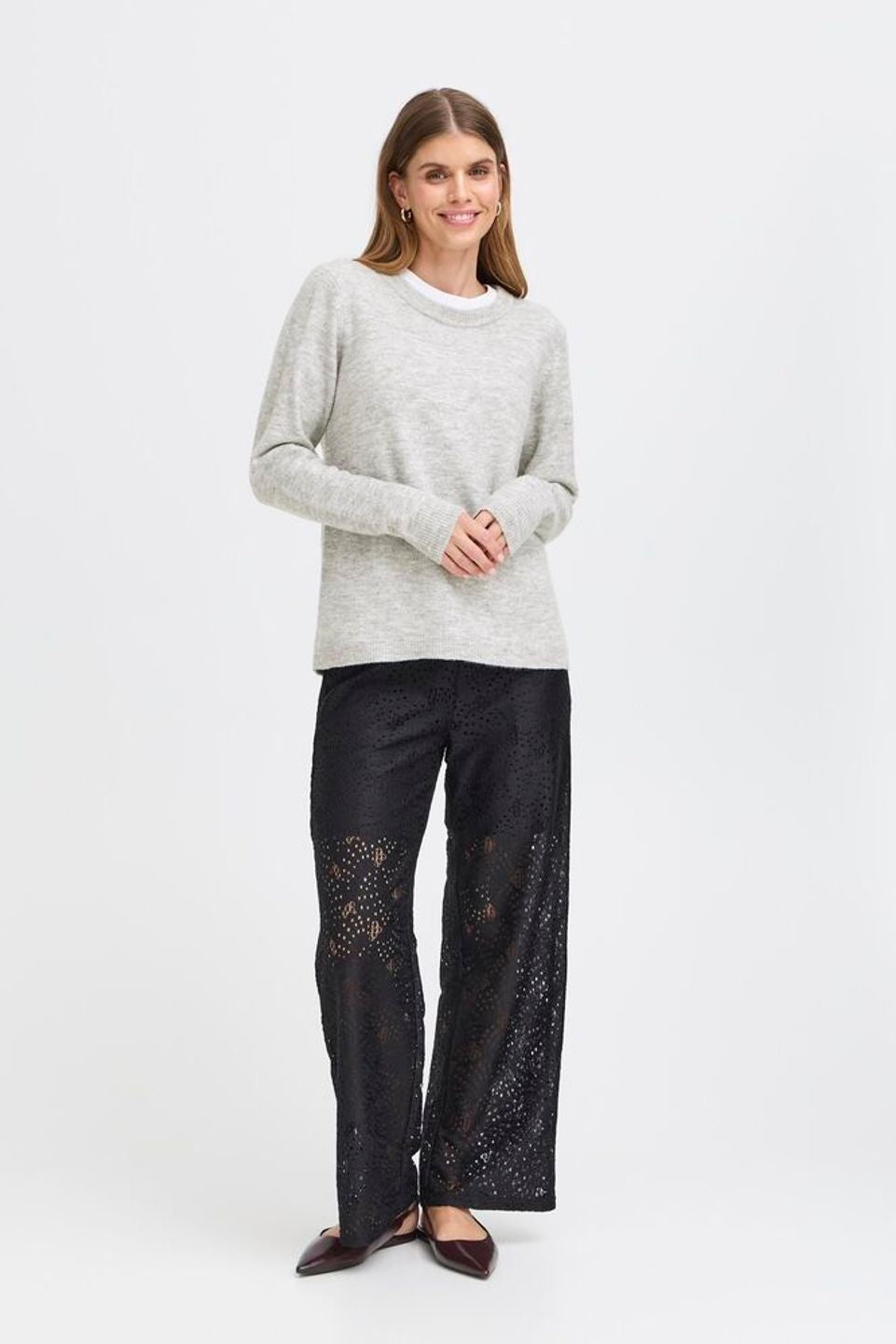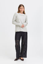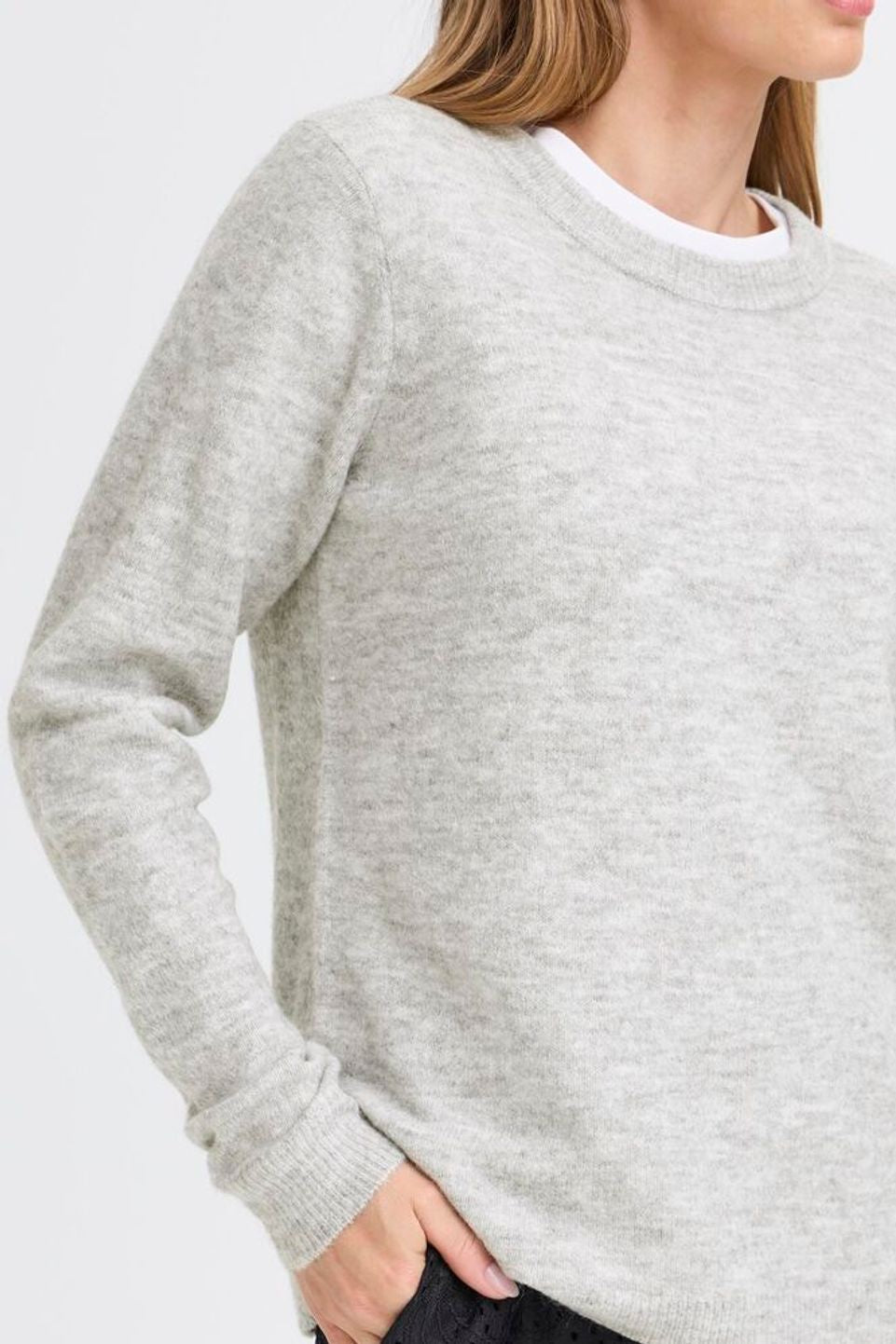 This Ellis Jumper in Light Grey Melange offers a refined silhouette with its straight fit and clean crew neckline. Crafted from a soft blend of acrylic, polyester, and elastane, it provides comfortable wear with a graceful drape. Ribbed cuffs and hem subtly enhance the structure, making this long-sleeve sweater an elegant and timeless addition to your wardrobe.