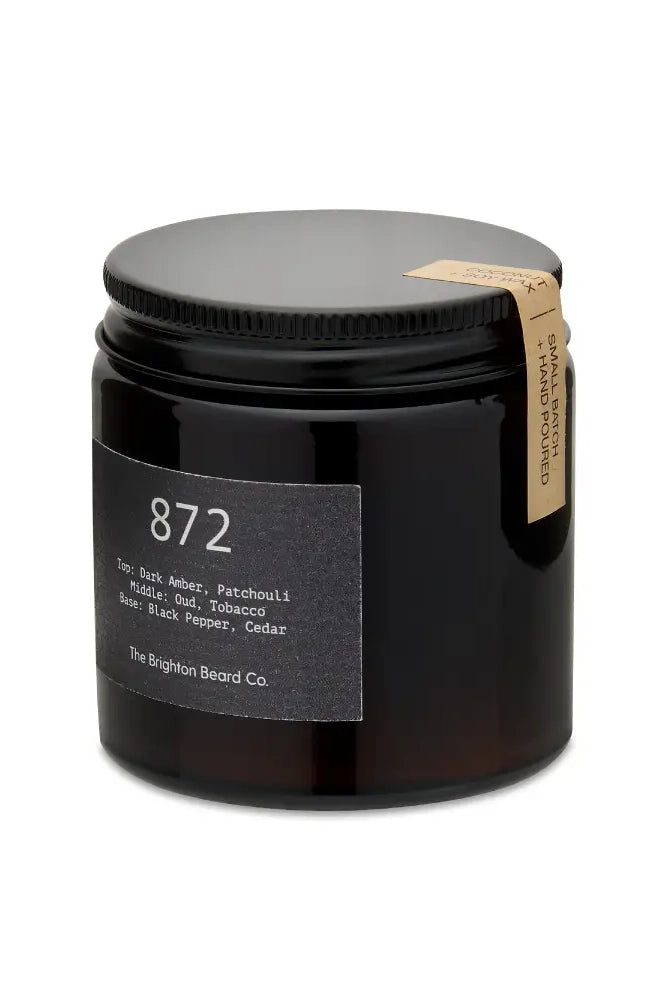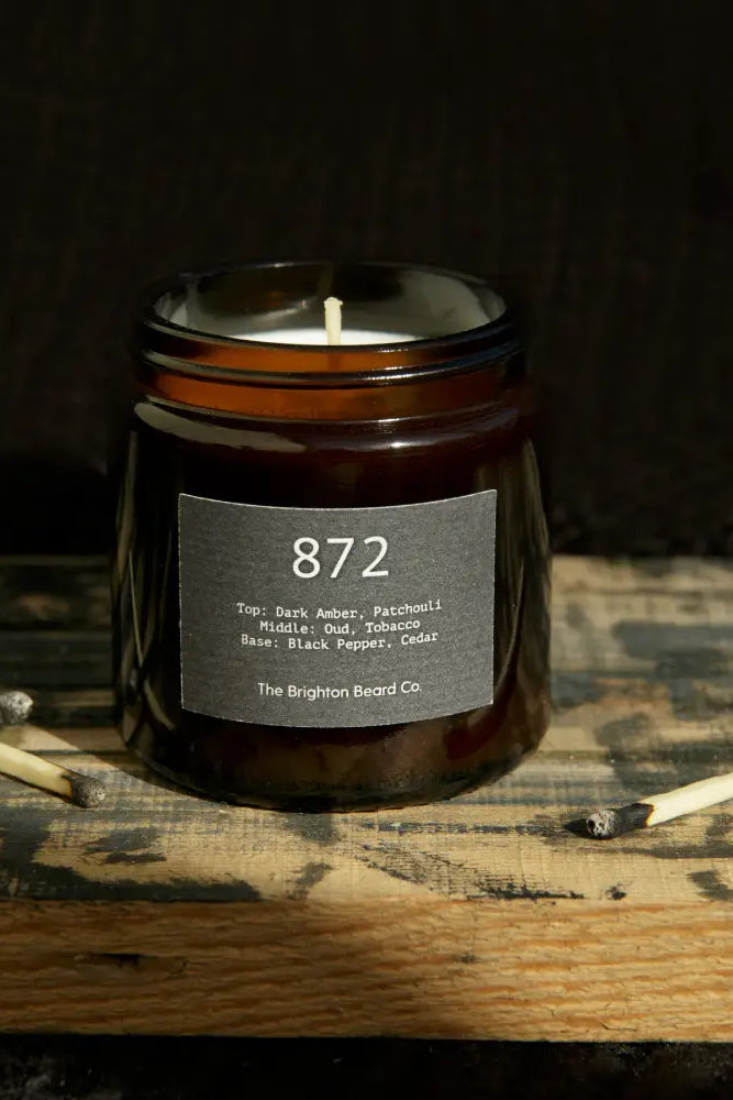 The '872' candle is a luxurious, hand-poured candle made with a blend of coconut and soy wax. This candle is specially formulated to release a rich and opulent, smoky woody scent when burned. The scent is composed of several different notes, including top notes of dark amber and patchouli, middle notes of oud and tobacco, and base notes of black pepper and cedar. The dark amber and patchouli provide a warm and earthy opening to the scent, while the oud and tobacco add a smoky and woody depth to the middle notes.