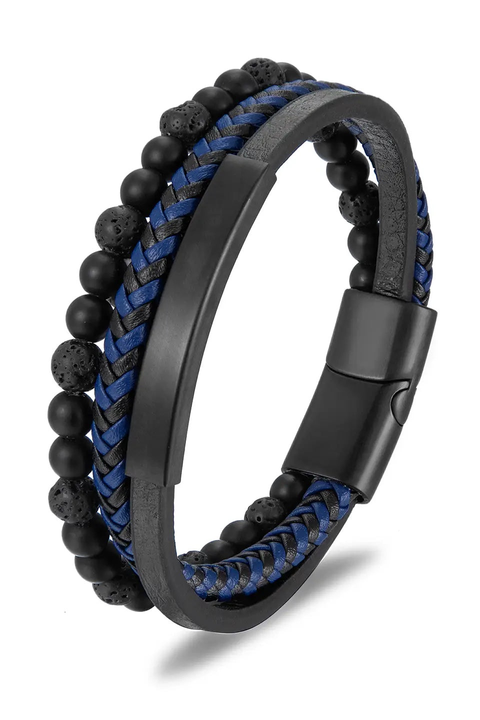 Add a splash of style with this playful black and blue leather bracelet. Its multi-layered design gives a bold, textured look, while the stainless steel clasp keeps it secure and sleek. At 21cm long, it comfortably wraps your wrist for a standout accessory that's both cool and easygoing. Perfect for adding a bit of edge to any outfit!