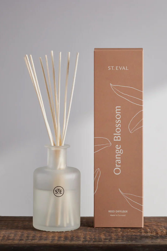 Each gift box comes with a frosted glass bottle, 10 reeds and bottle of our best selling Bay & Rosemary fragrance. The bottle takes 150ml of fragrance, and the reeds are 3mm in diameter and 25cm in length. Both refills and reeds are available to buy separately.- Fragrance: Orange Blossom