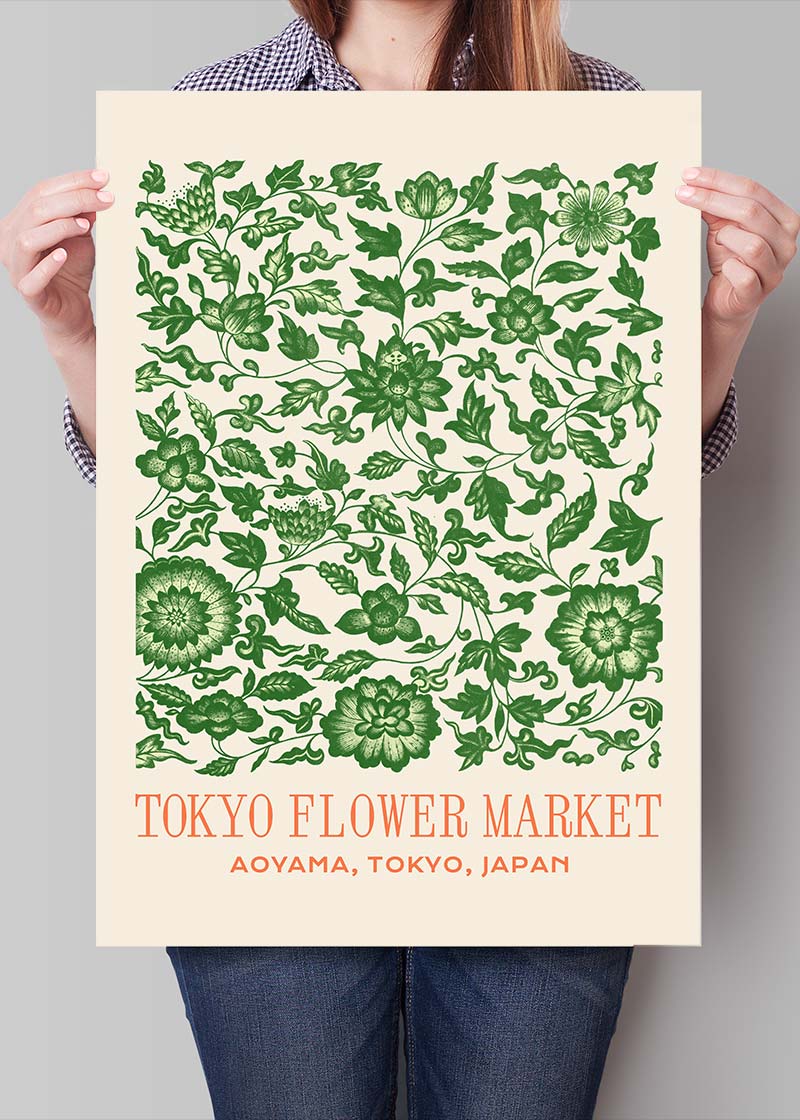 The perfect wall art for your Kitchen or Bathroom, this Tokyo Japan flower market print in it's beautiful, bright colours will really stand out in your home.