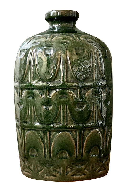 Beautiful, tall, round vase – perfect Art Deco – vintage dark green finish.