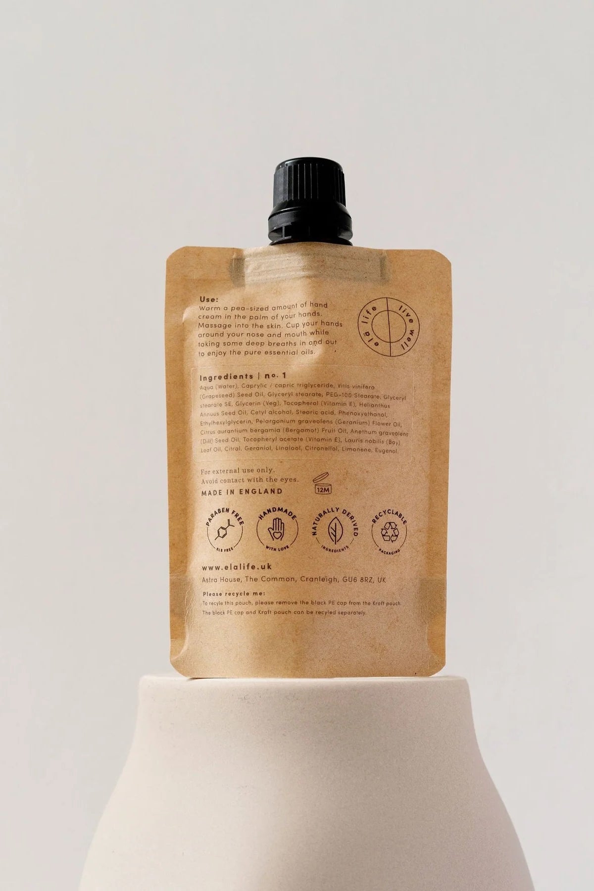 Using a kraft paper pouch, this hand cream is a more natural way to work self-love into your daily care and grooming routine with ease. The pouch fits easily in a pocket, hand bag or drawer for easy access.