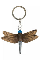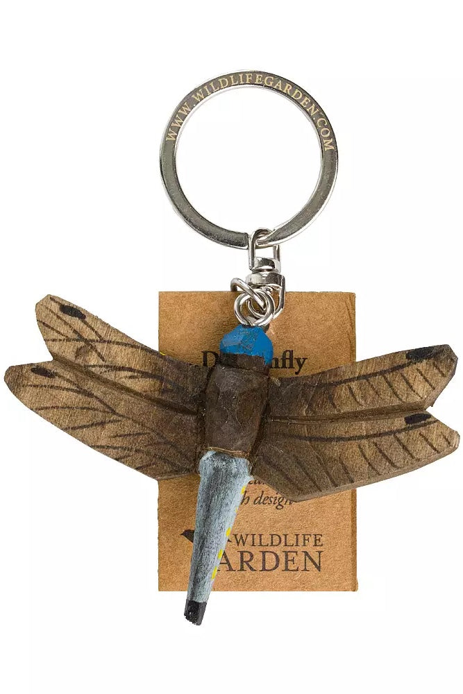 This keyring also makes a perfect bag charm with its practical wide wings. The dragonfly is carved out of a single piece of wood, and it's attached to a metal ring.