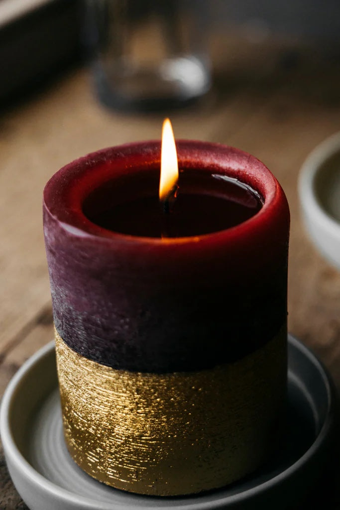 Gold-Dipped Pillar Candle | Figgy Pudding