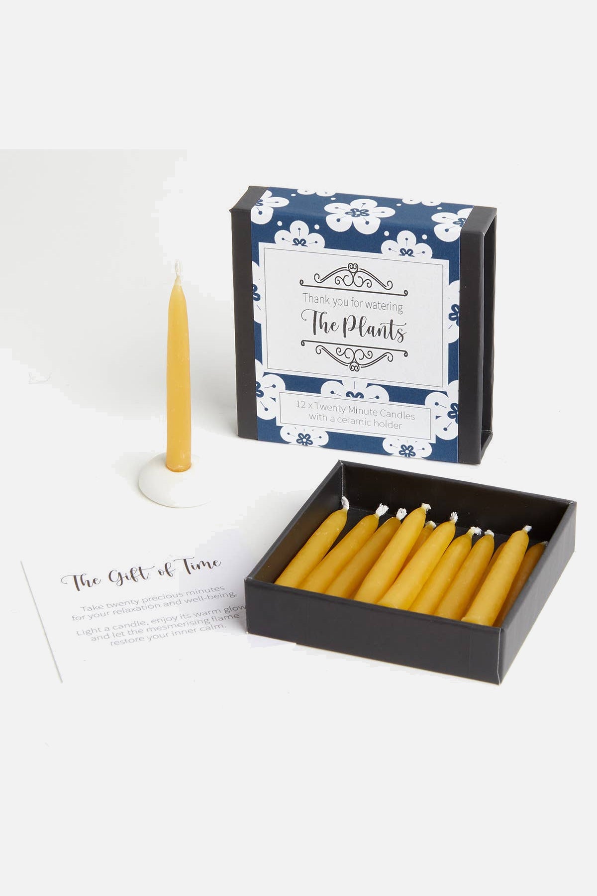 12 x Twenty Minute Candles with a ceramic holder.