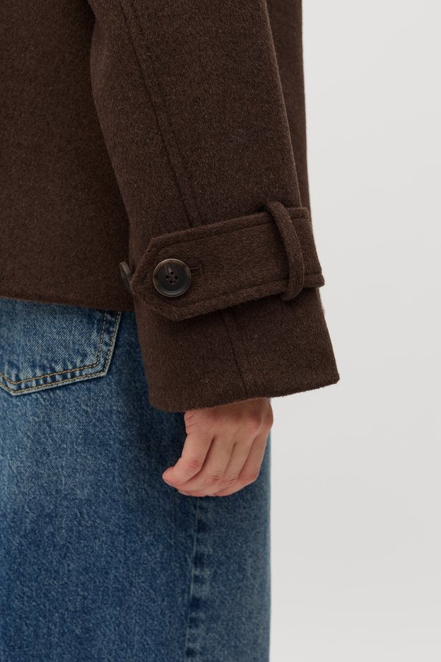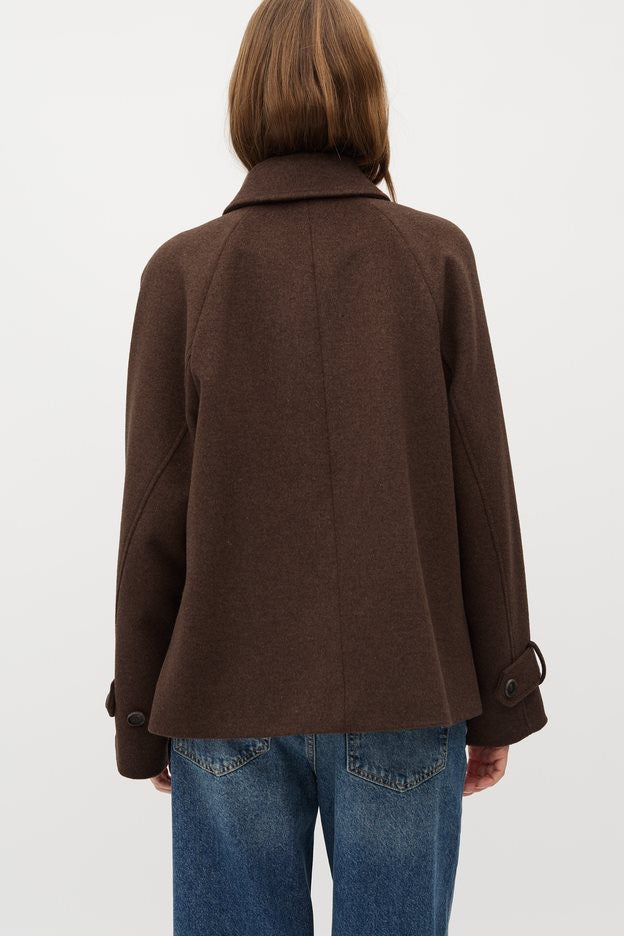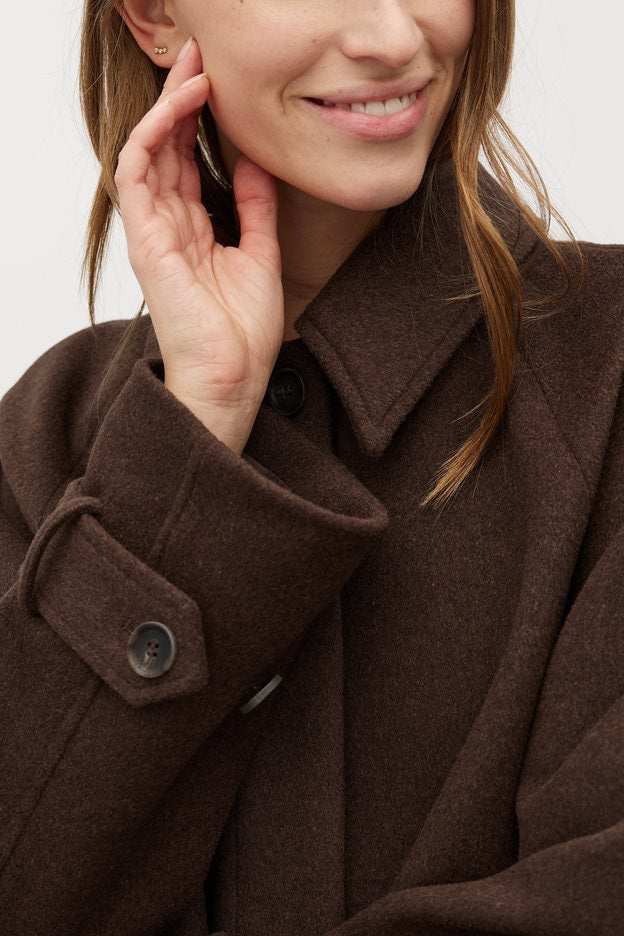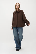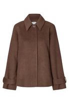 This Tary-M Wool Jacket in Java combines timeless elegance with modern comfort. Crafted from a premium blend of 50% wool and 45% polyester, it offers warmth and durability. Featuring a classic collar, concealed button closure, and a flattering A-line silhouette with a loose fit, it ensures effortless sophistication. Practical side pockets add subtle functionality, making it an ideal choice for refined, everyday wear.