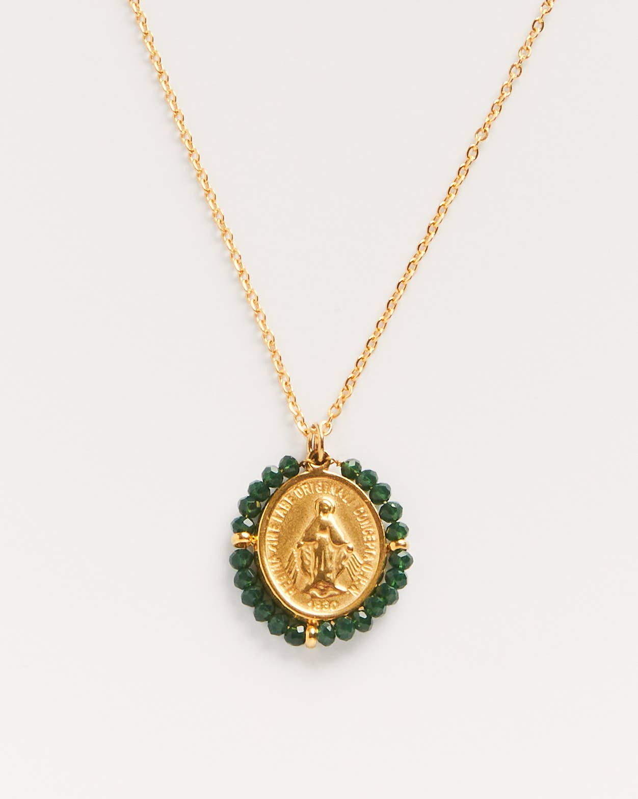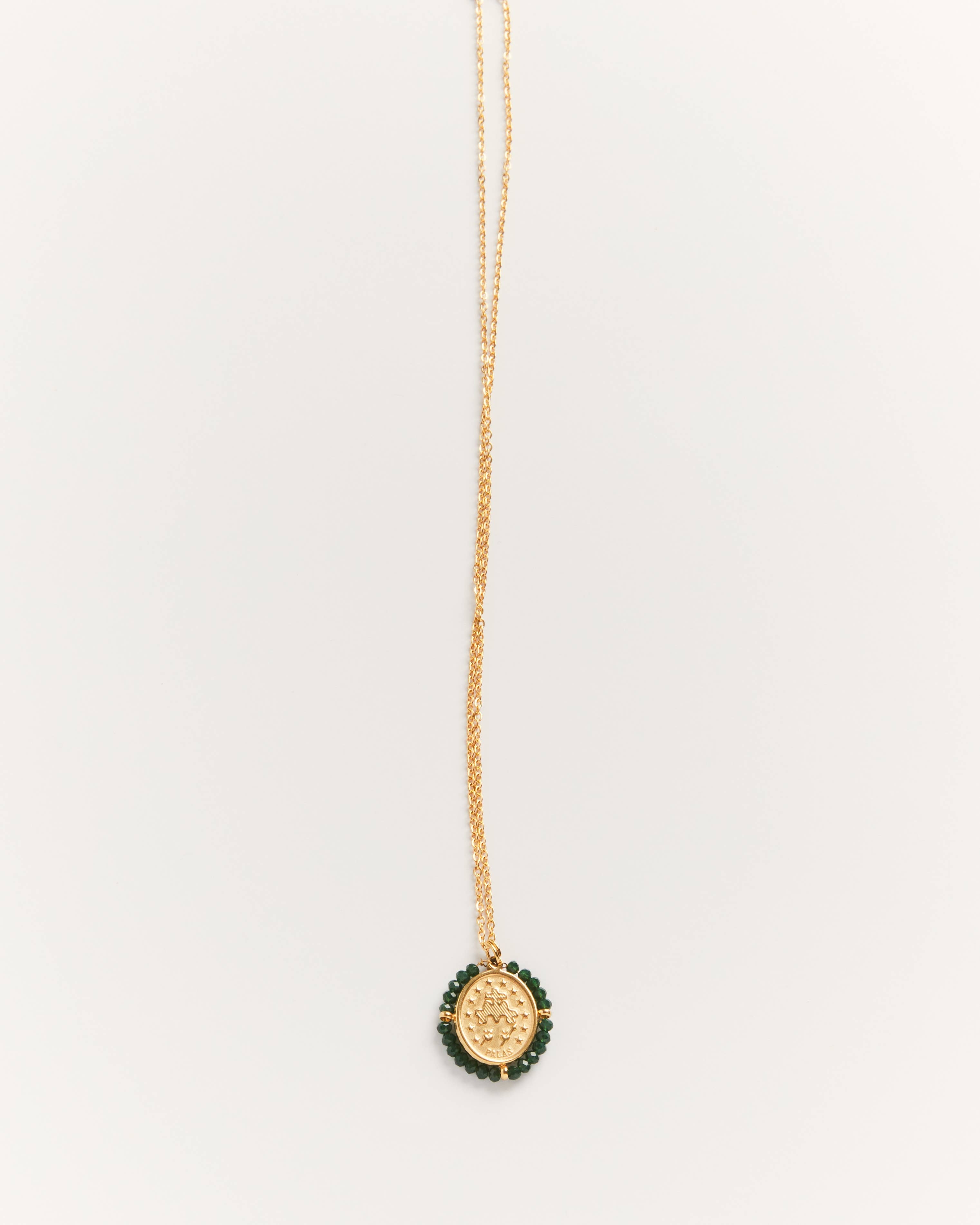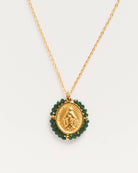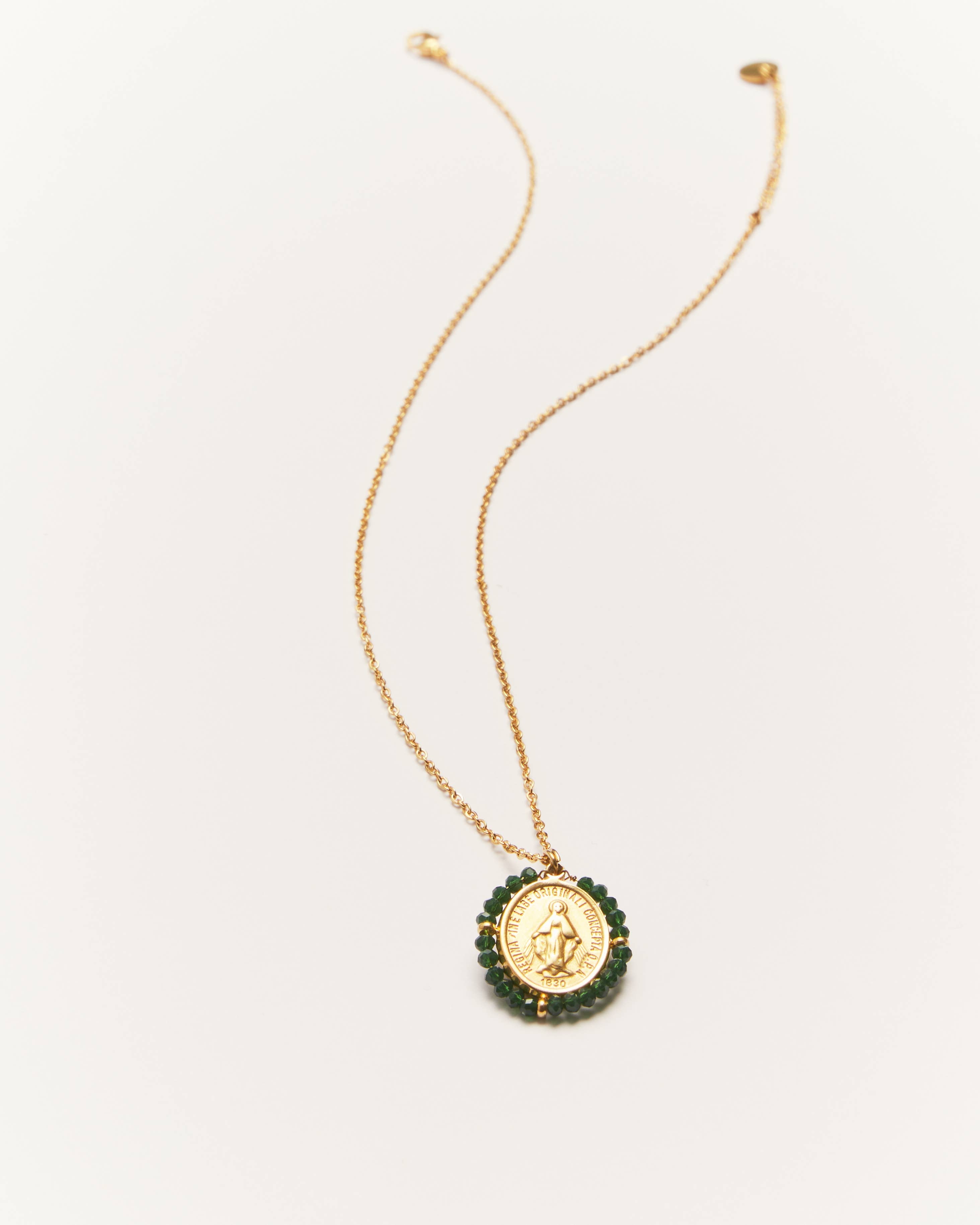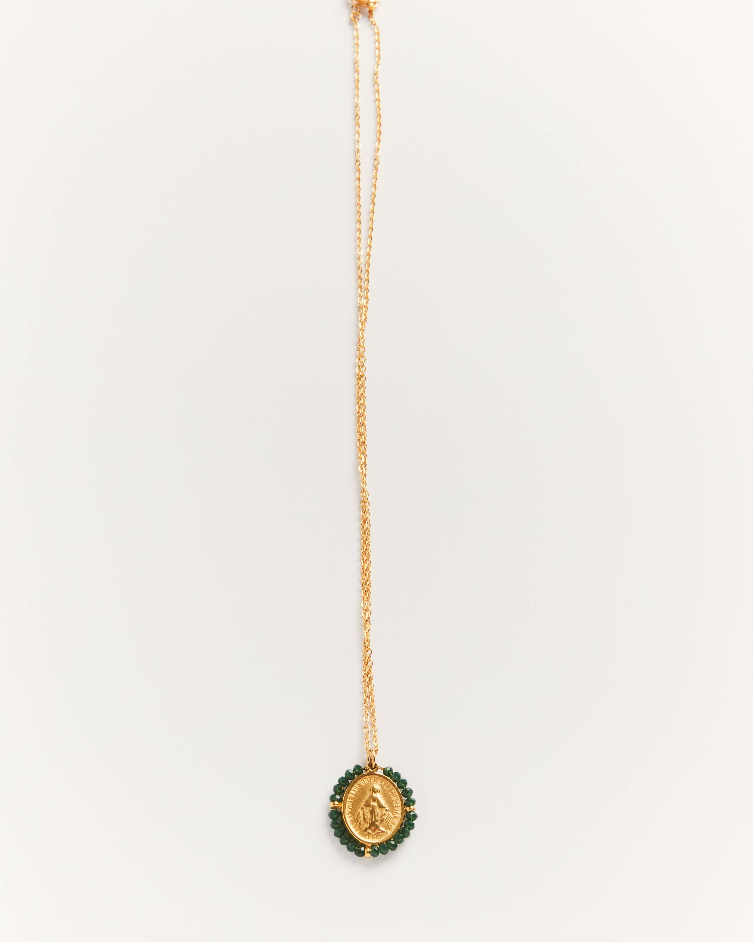 Santa Maria Forest Green | Golden Medal Necklace | Green Stones