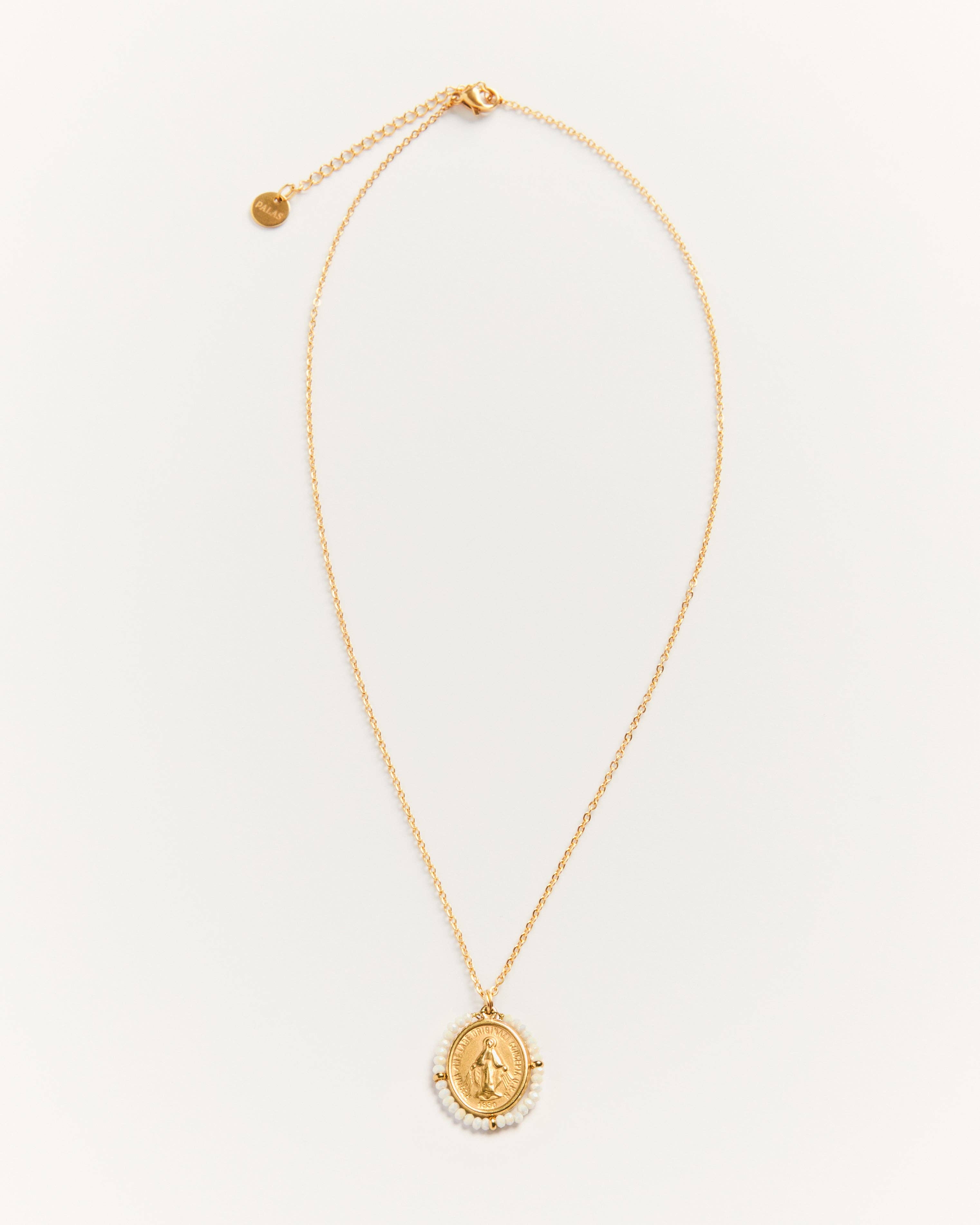 Inspired by the miraculous Mary medal, our Santa Maria necklace and pendant are our most iconic designs. We love the delicate chain and the colorful beads. But what we love more is the fact that this necklace is hypoallergenic and non-tarnishing.