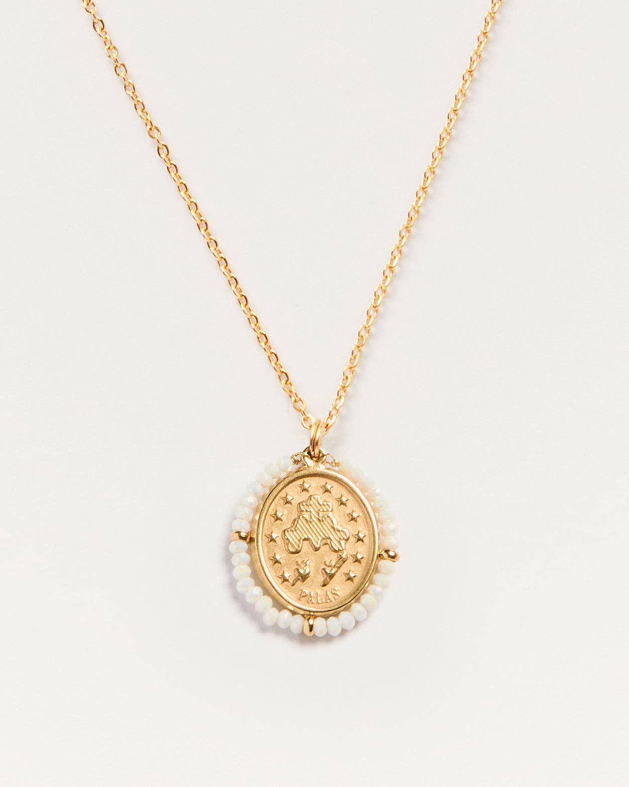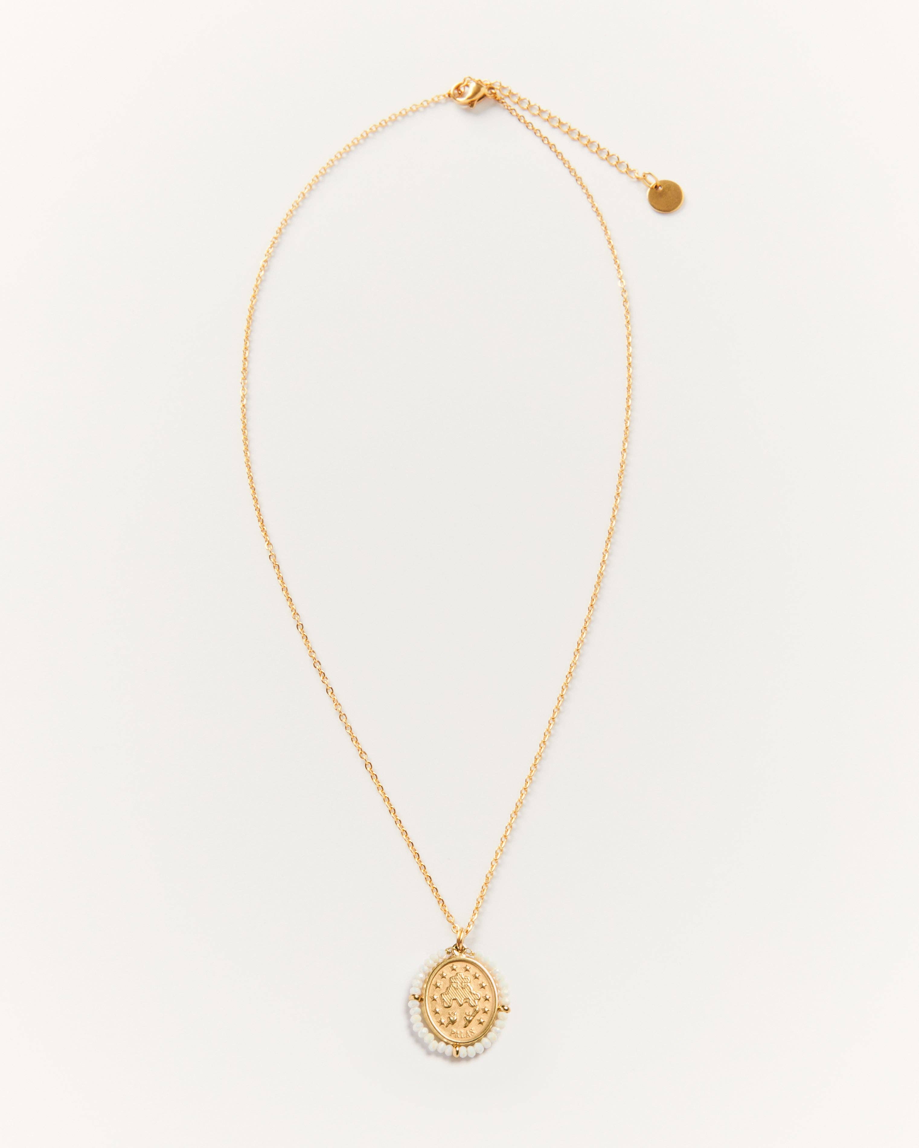 Santa Maria Shiny Cream | Golden Medal Necklace | Shiny White Stones