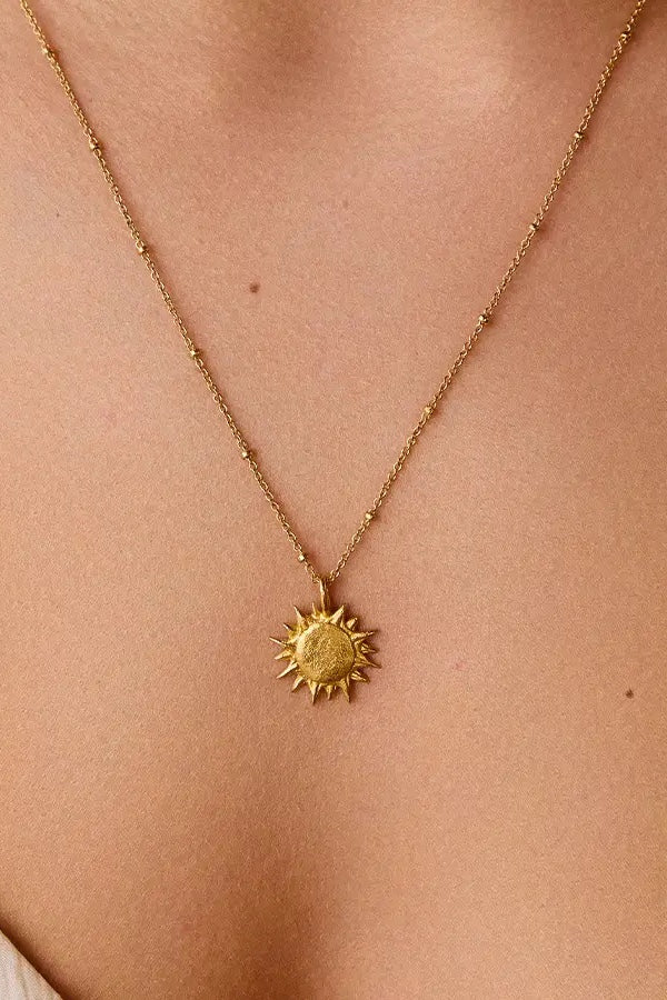 The Solea Necklace in gold captures the radiant spirit of ancient sun-worshipping women, offering a touch of timeless inspiration. Crafted in France from brass with a gold-plated finish, its bright yellow gold hue adds a bold yet elegant statement to both everyday and elevated casual looks. This individual piece embodies summer’s warmth and light, perfect for those seeking a sophisticated accessory that shines with confidence and style. Water resistant.
