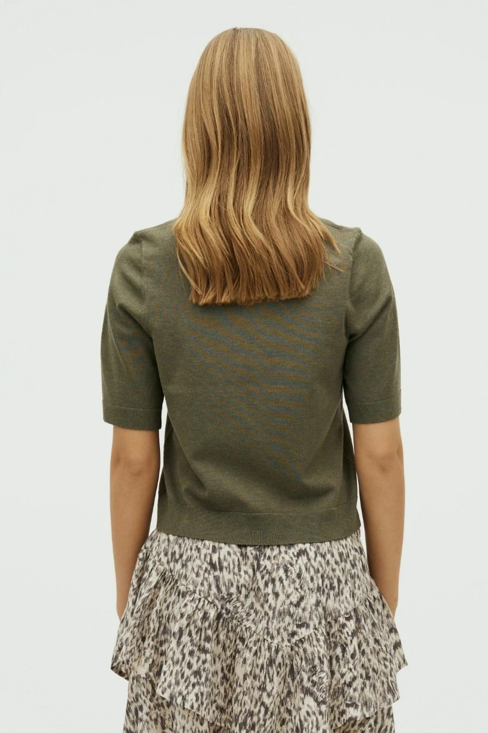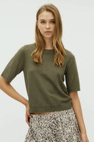 Layer this breezy sea spray knit under your favourite jacket for instant polish, or wear it solo when the mood strikes. The short sleeves keep things light and airy, while the soft knit fabric hugs just right. Perfect for those in-between days when you want effortless style that works as hard as you do. Carla's your new go-to piece for mixing and matching.