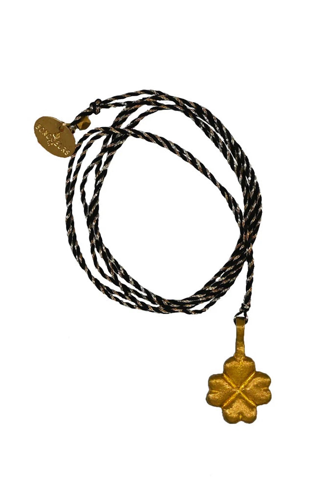 It is mounted on a lurex cotton thread with a brass tassel. A sliding knot allows its length to be adjusted.It comes in a pouch that tells its story. A lovely gift ready to (give) yourself.