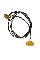 It is mounted on a lurex cotton thread with a brass tassel. A sliding knot allows its length to be adjusted.It comes in a pouch that tells its story. A lovely gift ready to (give) yourself.