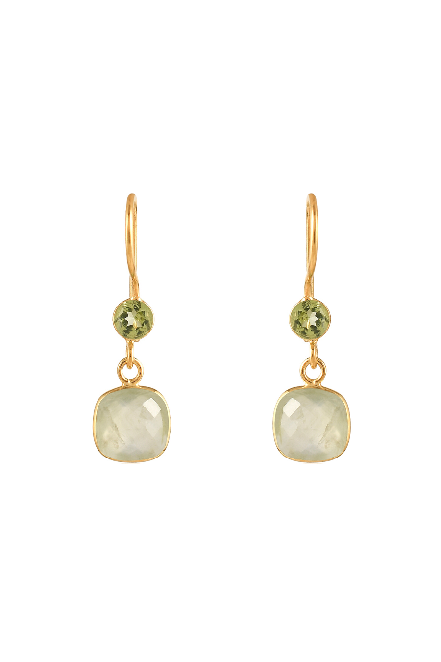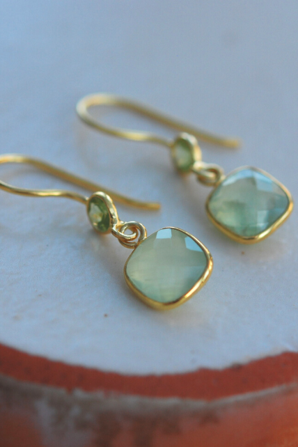 These cute, easy-wearing earrings are set with a lovely combination of prehnite and peridot gemstones.