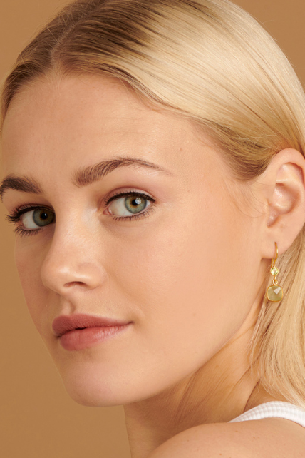 Materials: the earrings are made of gold plated sterling silver and are set with prehnite and peridot.