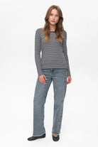 Stay cozy and stylish with the Melany Long Sleeve Stripe Top in classic Sapphire and Grey stripe. Perfect as a base layer on chilly days, its timeless stripes add a fun twist to any outfit. Whether layered or worn solo, it’s your new go-to for comfort and flair this season!