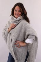 Mohair Blend Cable Knit Poncho | Silver Grey