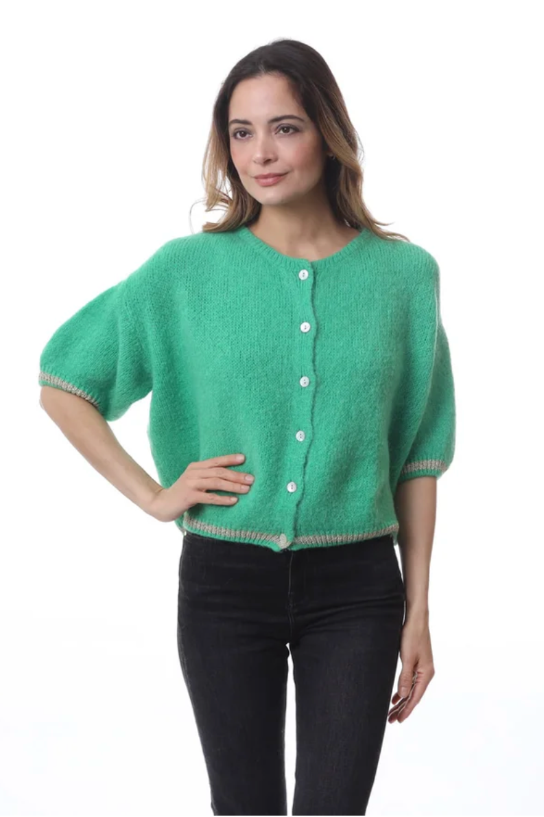 Mohair Short Sleeved Cardigan | Laguna Green