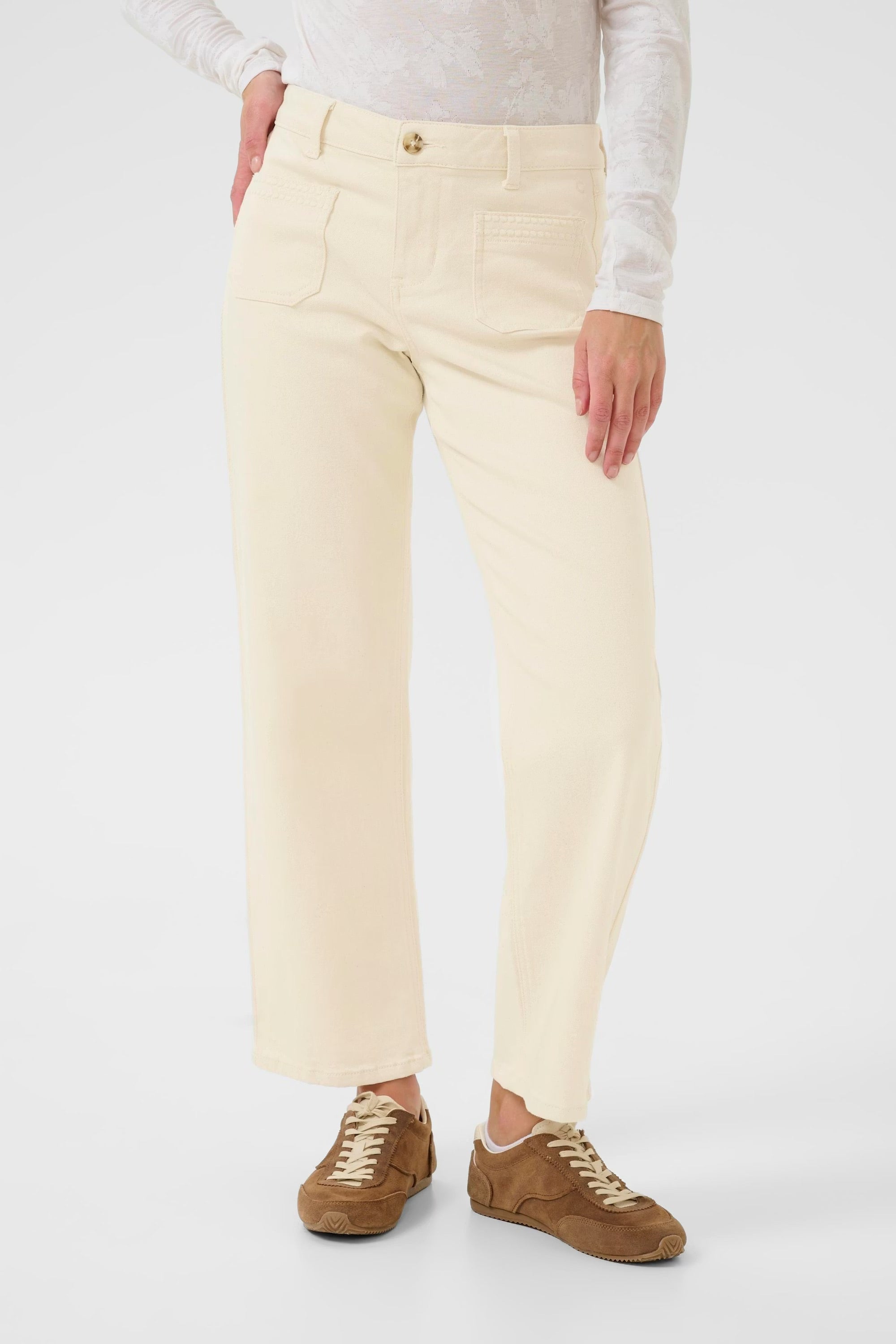 These straight leg pants offer a relaxed fit and modern style. Featuring front patch pockets with refined stitch detail, they deliver both comfort and versatility for everyday wear or casual outings.