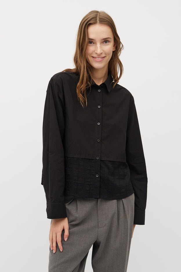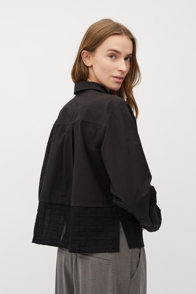 Crafted from an elegant blend of 50% cotton and 50% modal, the Semilla Shirt | Sugar offers exceptional softness and breathability. Its sheer decorative trim adds a refined touch, enhancing its sophisticated appeal for effortlessly polished looks.